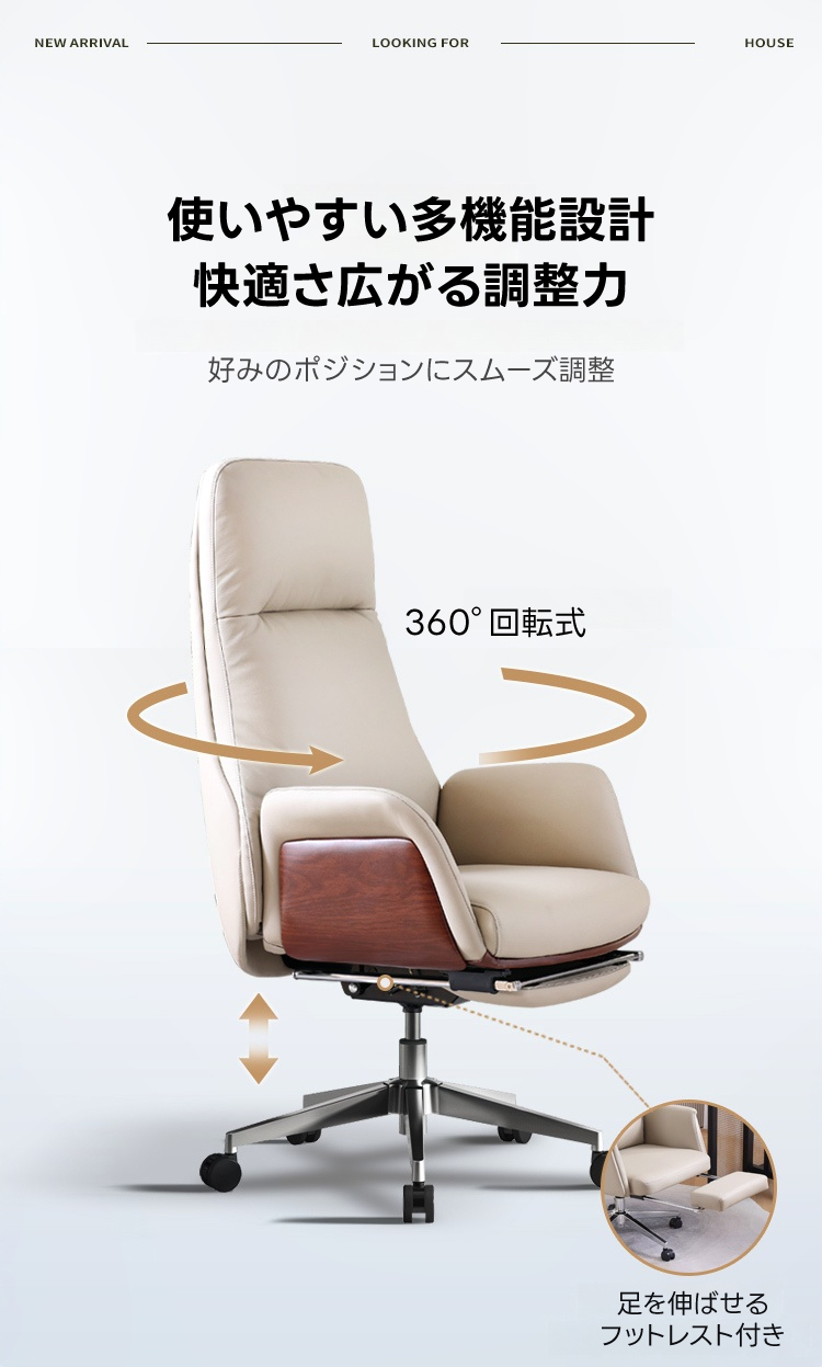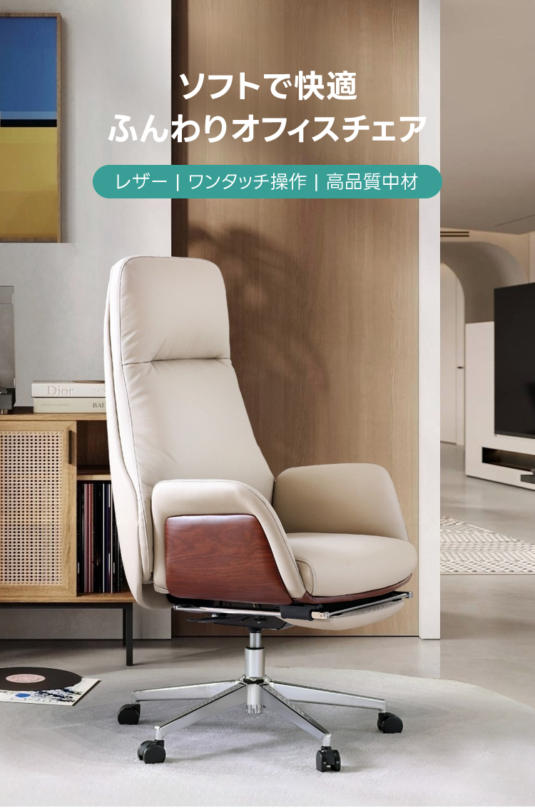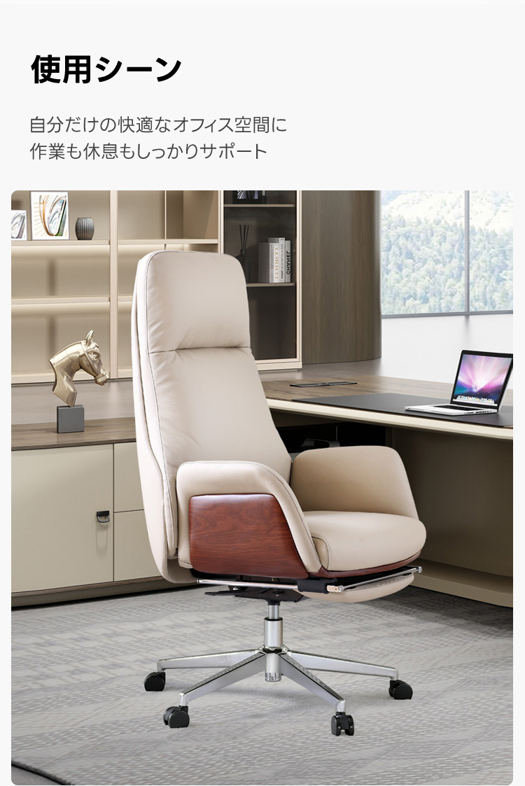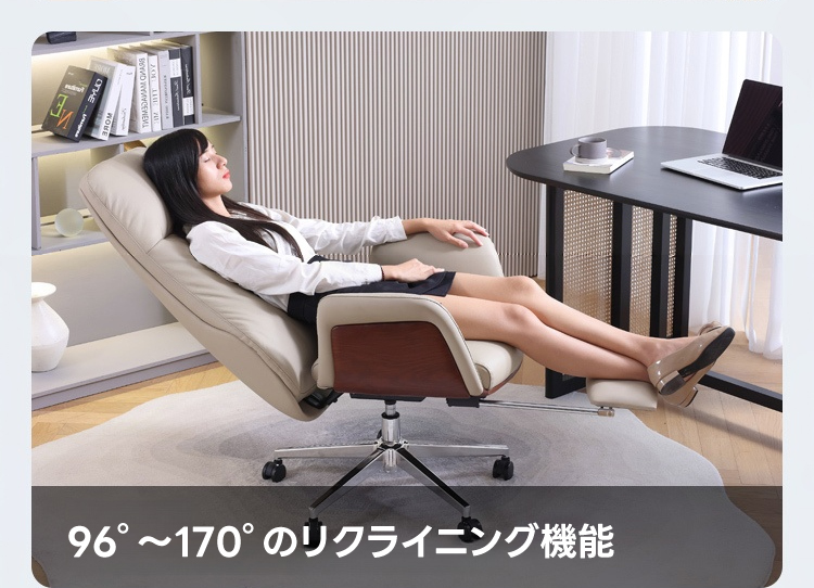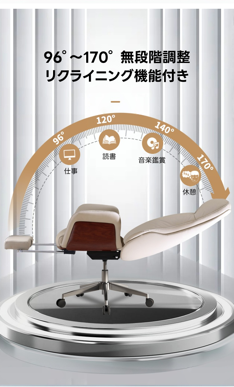 - 【多機能リクライニング機能】:ハイバックレザーチェアは、96°から170°まで無段階調整可能なリクライニング機能を備え、作業からリラックスまで幅広く対応します。ガススプリングによる昇降機能で、座面の高さを自由に調整可能です。