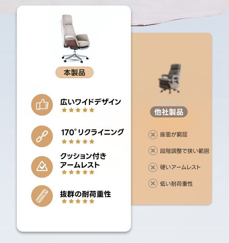 - 【安全性と耐久性】:国際基準の安全性をクリアしたガススプリングを採用し、耐荷重は150kgまで対応。長期間使用しても安心してお使いいただける設計です。
