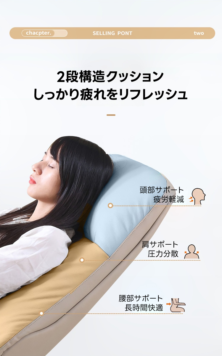 - 【ユーザーに優しい設計】:2段構造のクッションが頭部、肩、腰をしっかりサポートし、圧力を分散。静音キャスターでスムーズな移動が可能で、快適な時間を提供します。