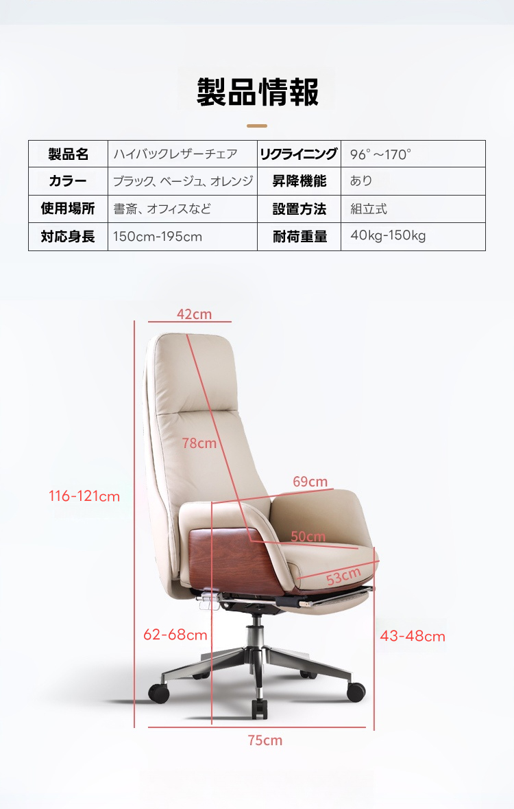 - 【高品質素材とスタイリッシュデザイン】:ナッパレザーと合皮を使用し、高級感のある仕上がり。ブラック、ベージュ、オレンジの3色展開で、どんなインテリアにもマッチします。シンプルモダンなデザインが魅力です。