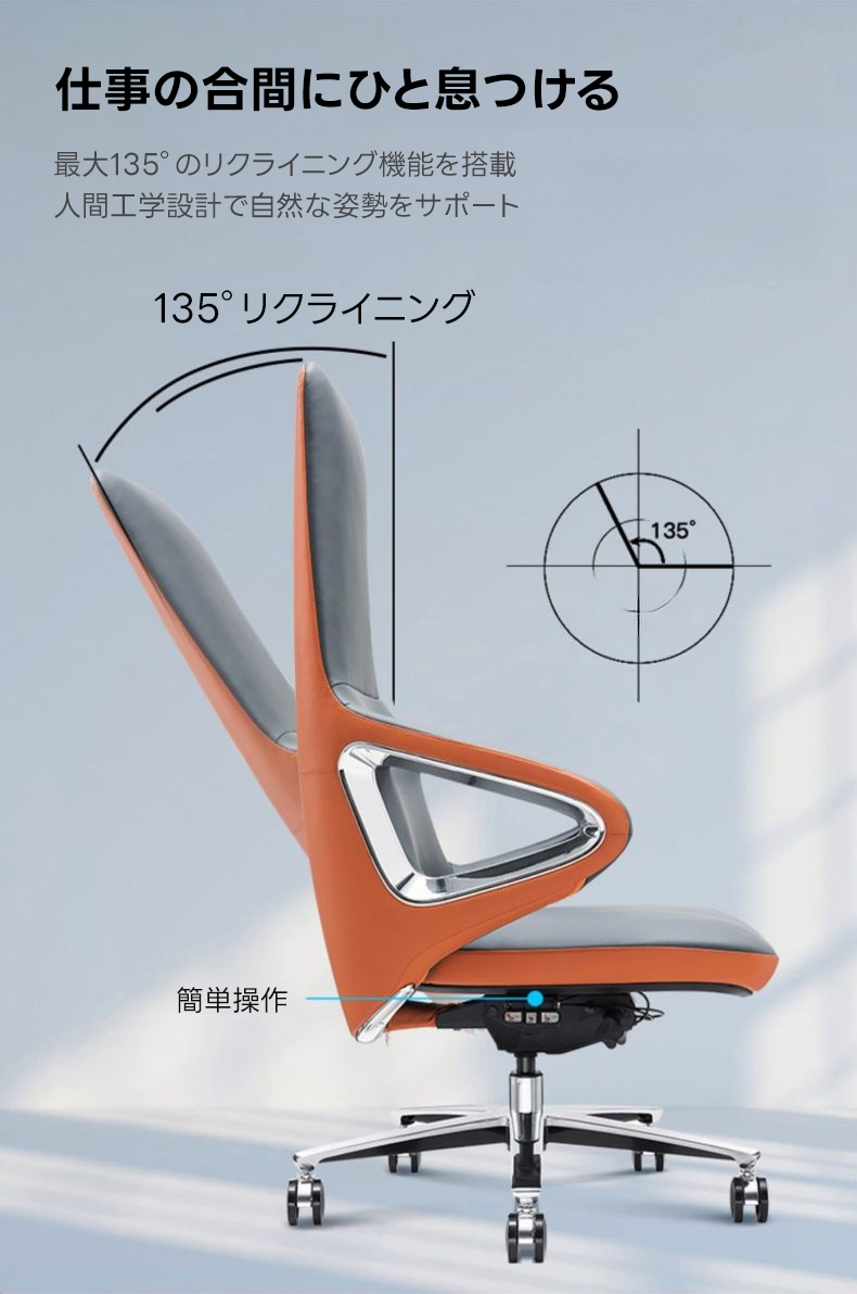 - 【リクライニング機能でリラックス】最大135°のリクライニングが可能で、仕事の合間にリラックスできます。簡単操作でリクライニング、スライド、昇降の各機能を調整でき、快適な座り心地を実現します。