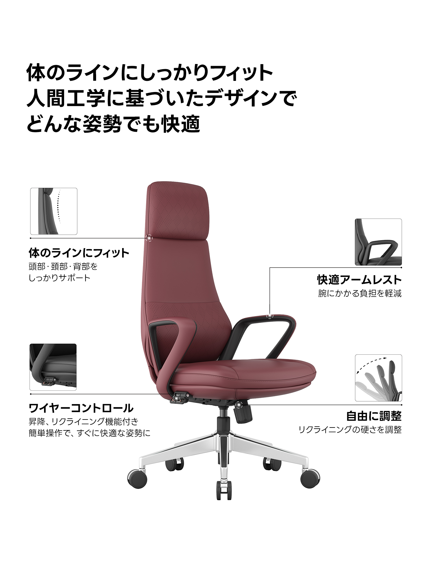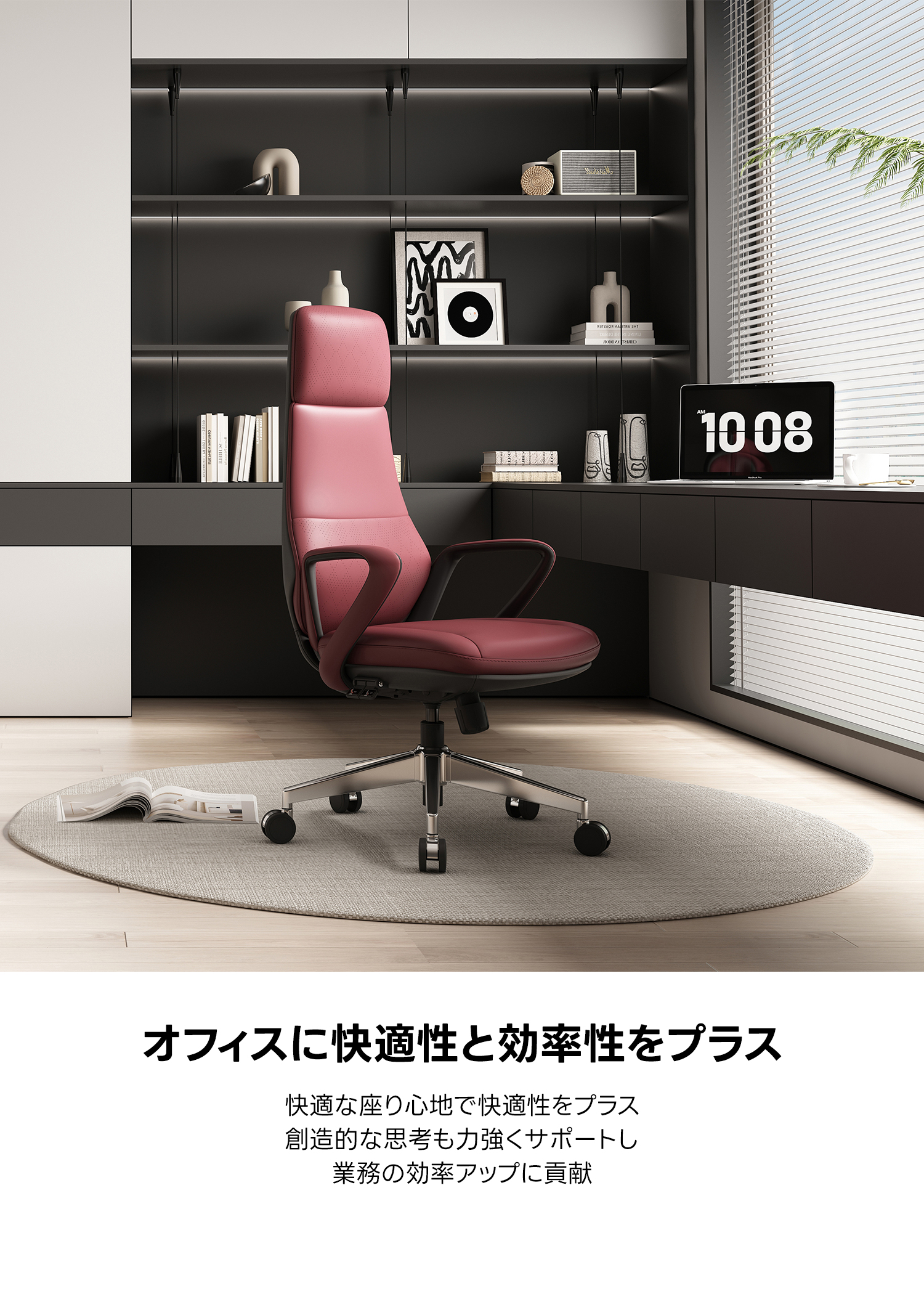 - 【高品質な素材とデザイン】高品質なレザー仕上げで、高級感と耐久性を兼ね備えています。鮮やかなレッドカラーがオフィスやホームオフィスに華やかさをプラスします。幅70cm、奥行70cm、高さ115cmのサイズで、様々な生活スタイルに対応可能です。