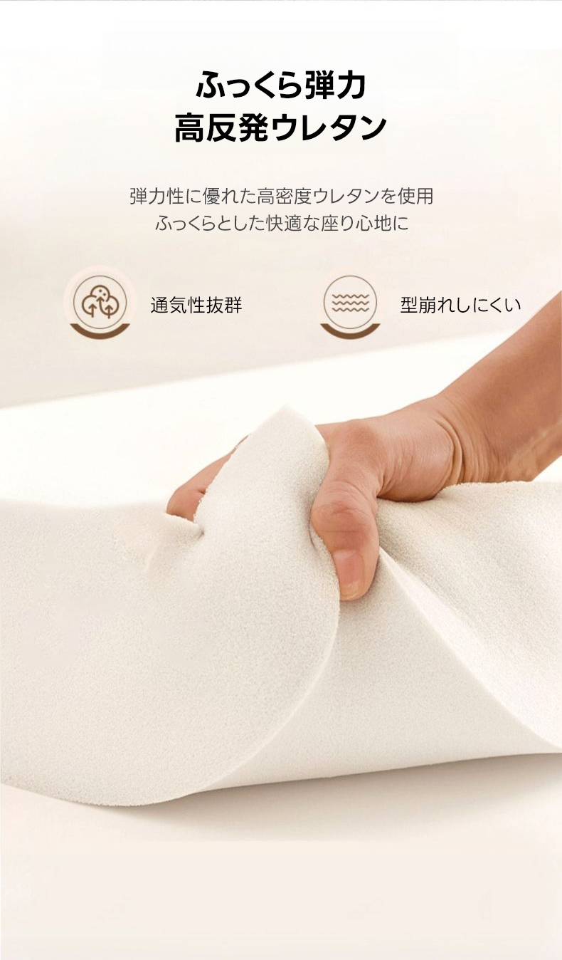 - 【快適な座り心地】高反発ウレタンを使用したクッションが、長時間の使用でも疲れにくい座り心地を提供します。包み込むようなふっくらクッションが、体をしっかりサポートします。