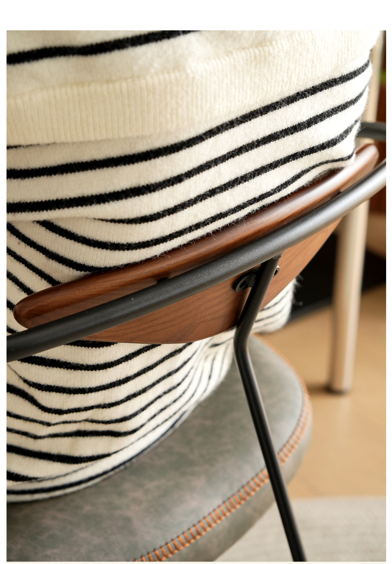 - 【高品質な素材とデザイン】滑らかで肌に優しい合皮素材と、自然な温もりを感じさせるホワイトオークの背もたれを採用。頑丈なアイアンフレームが安定感を生み出し、長持ちする耐久性を保証します。