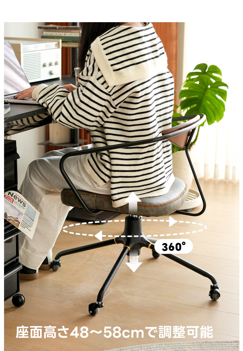 - 【快適な座り心地と機能性】このレザーオフィスチェアは、合皮素材と高反発ウレタンを使用し、長時間の使用でも快適な座り心地を提供します。高さ調節可能なガスシリンダーと360度回転キャスターにより、オフィス内での移動も楽々です。