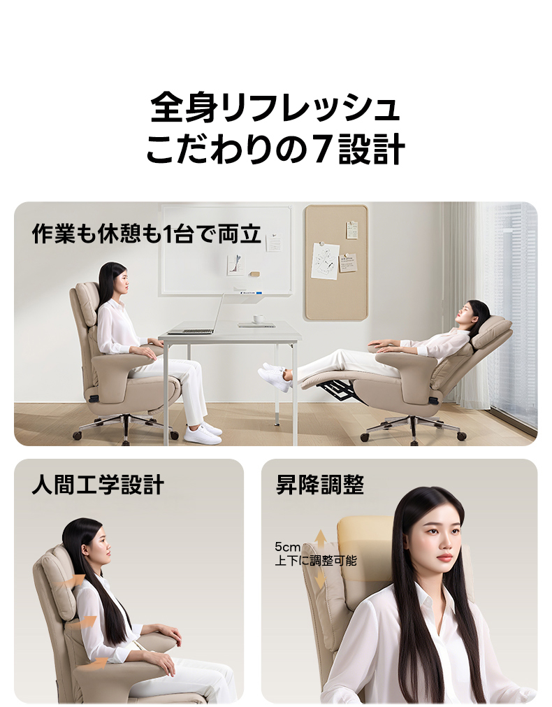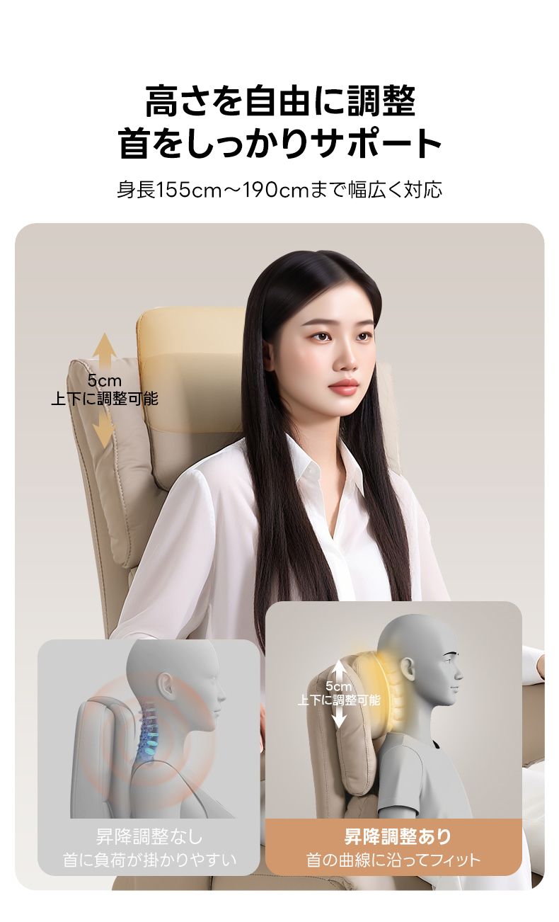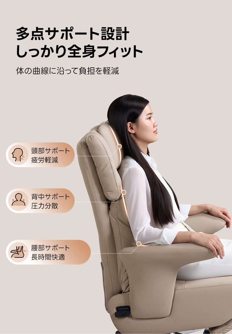 - 【快適な座り心地とサポート】人間工学に基づいた設計で、頭部、背中、腰部をしっかりサポートします。調整可能なヘッドレストは高さを5cmまで調整可能で、首をしっかりサポート。長時間座っても疲れにくい設計です。