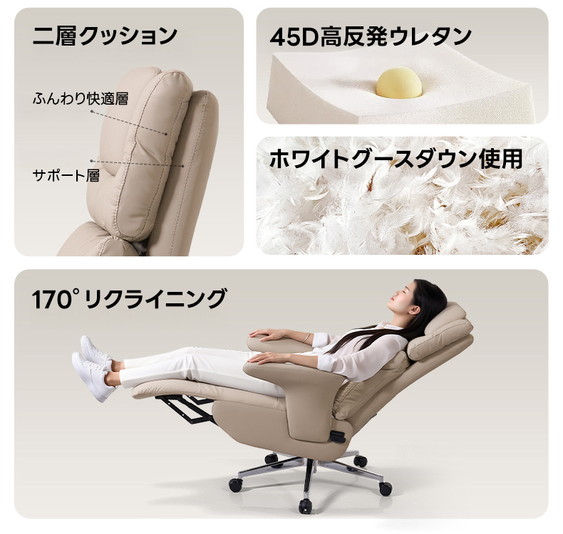 - 【高品質な材料と優れた設計】このチェアは、ホワイトグースダウンと高品質中綿を使用した二層クッションで、ふんわりとした座り心地を提供します。ドイツ製カーボンステールフレームを採用し、安定性と耐久性を兼ね備えています。