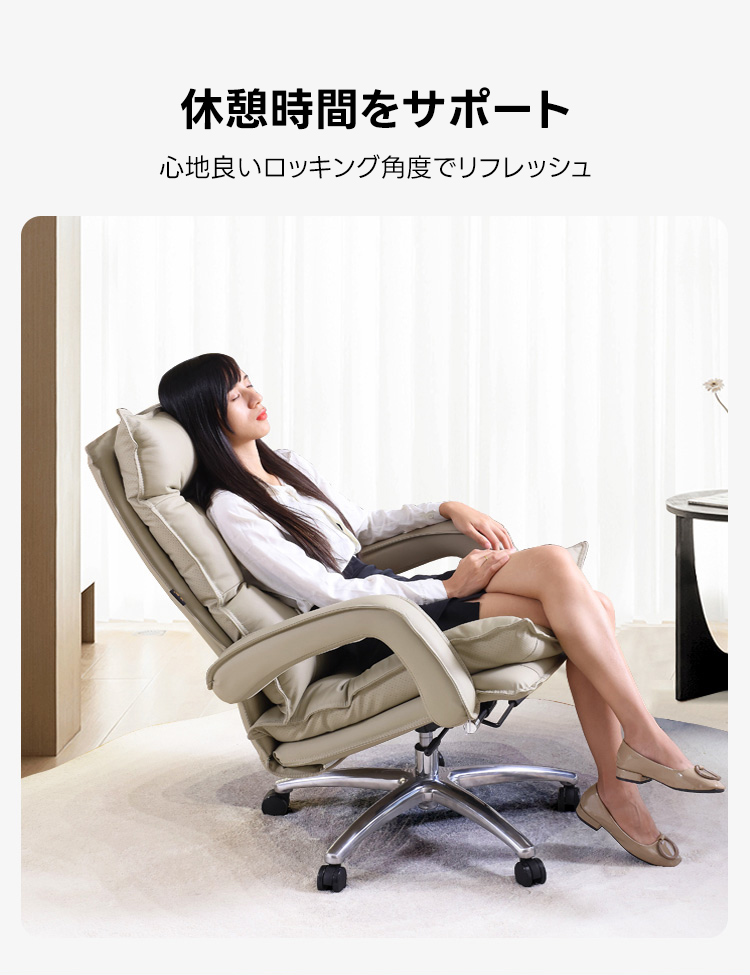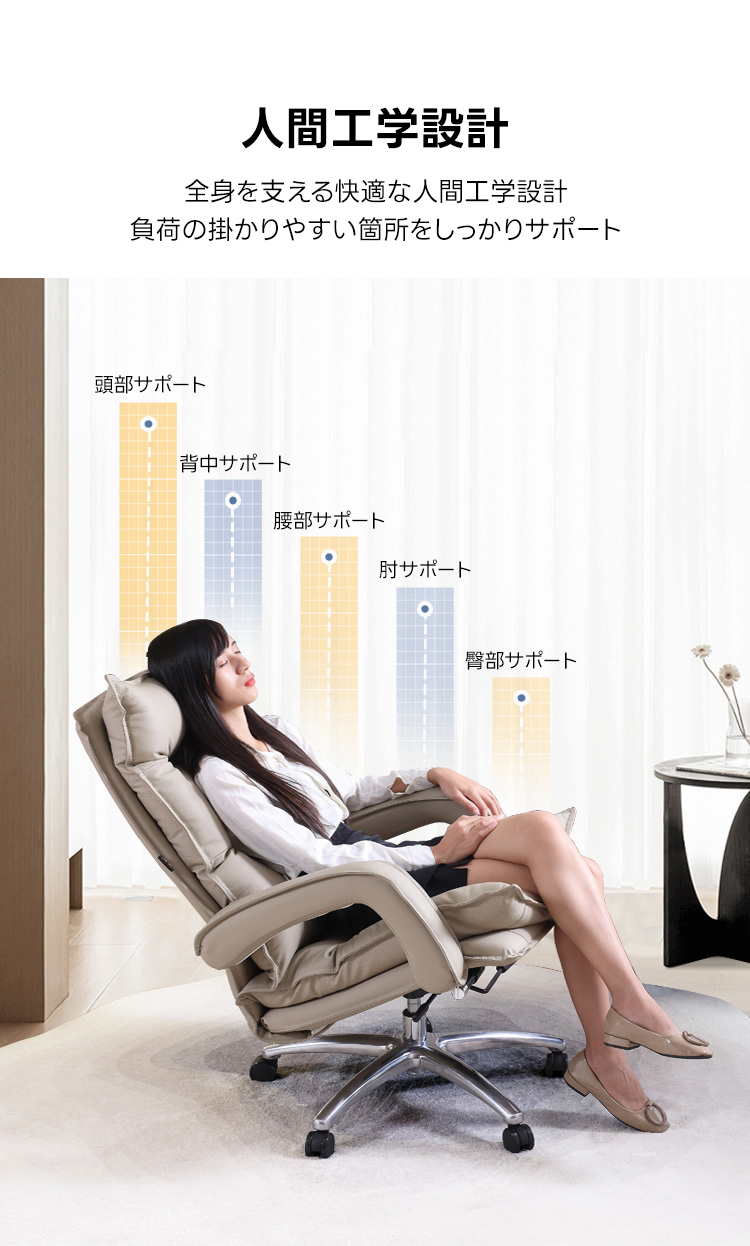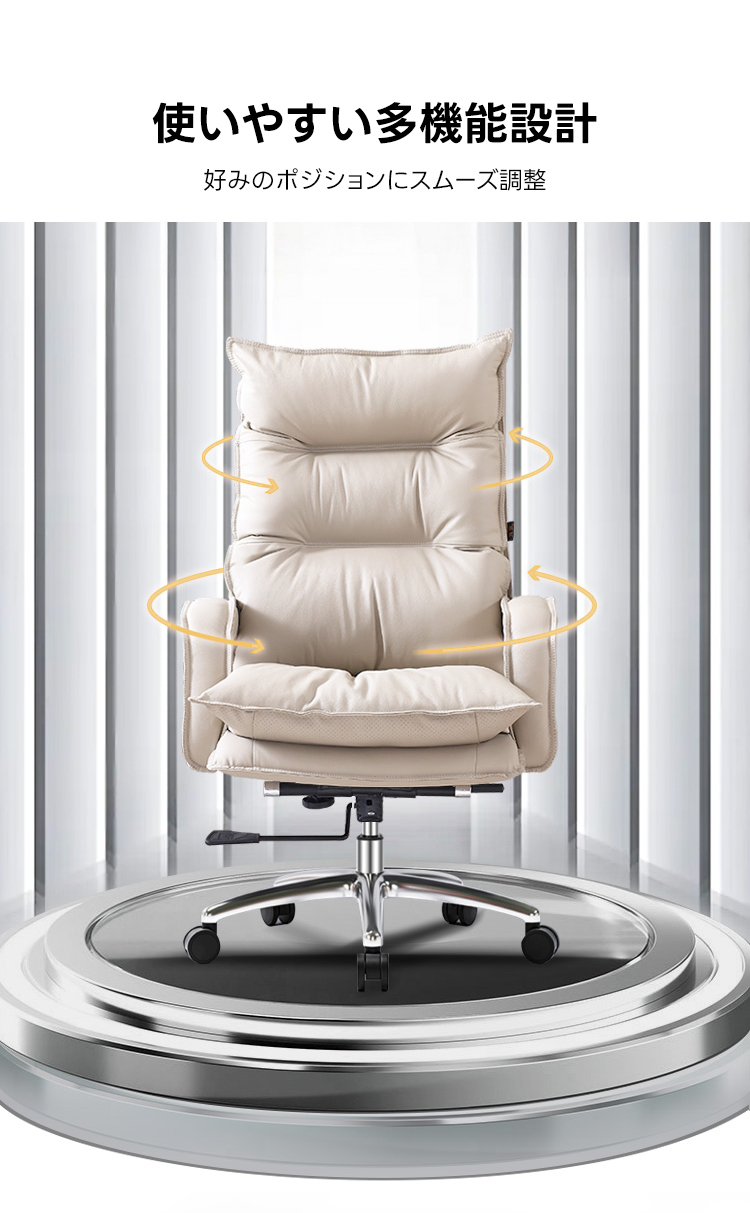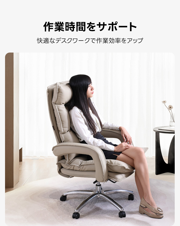 - 【多様な使用シーンに対応】:シンプルでエレガントなベージュカラーの合皮素材は、どんなオフィスや書斎にもマッチ。リビングやホームオフィスでも活躍し、一人暮らしの方からカップル、ファミリーまで幅広く対応します。