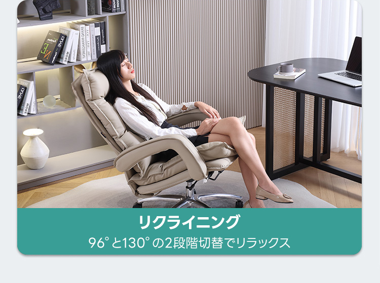 - 【快適な座り心地とリラックス機能】:リクライニング機能は96度から130度まで調整可能で、作業中もリラックスした姿勢を保てます。高い通気性により、長時間座っても蒸れにくく、快適な座り心地を提供します。