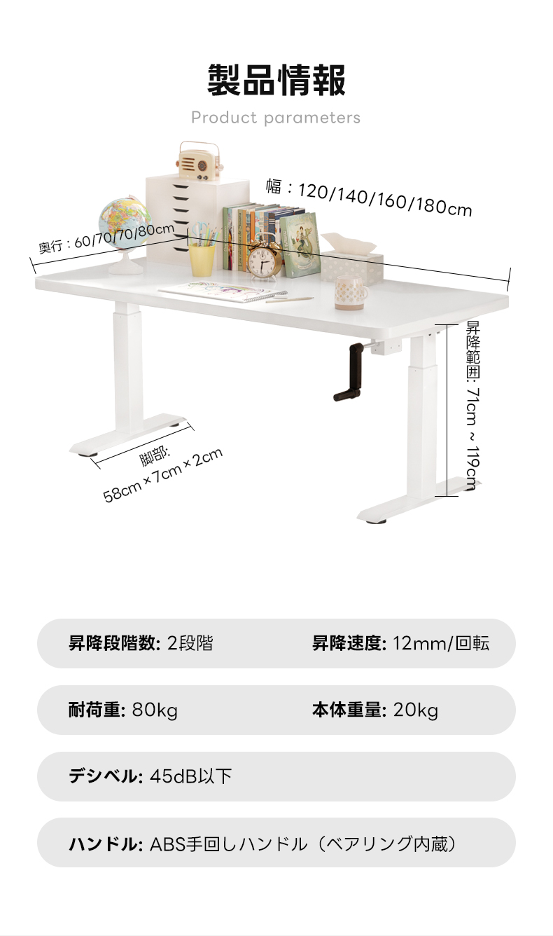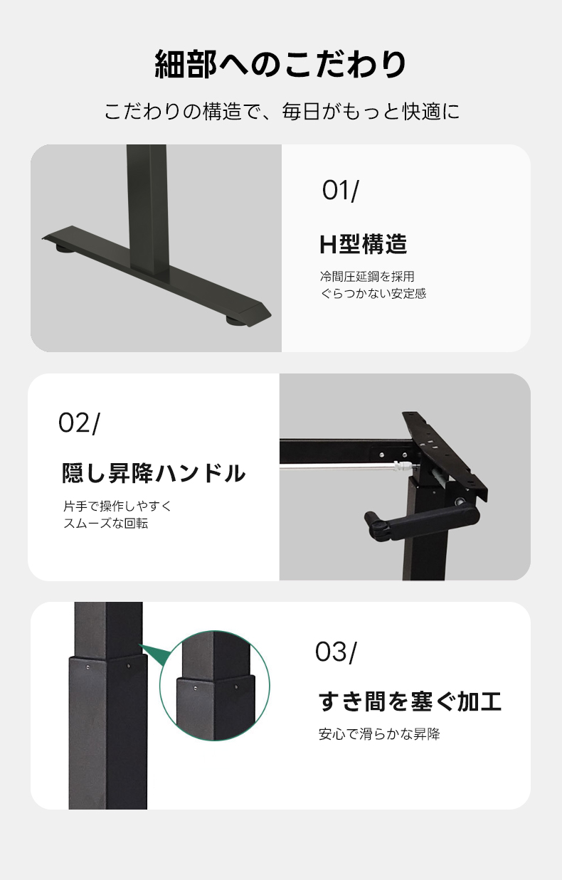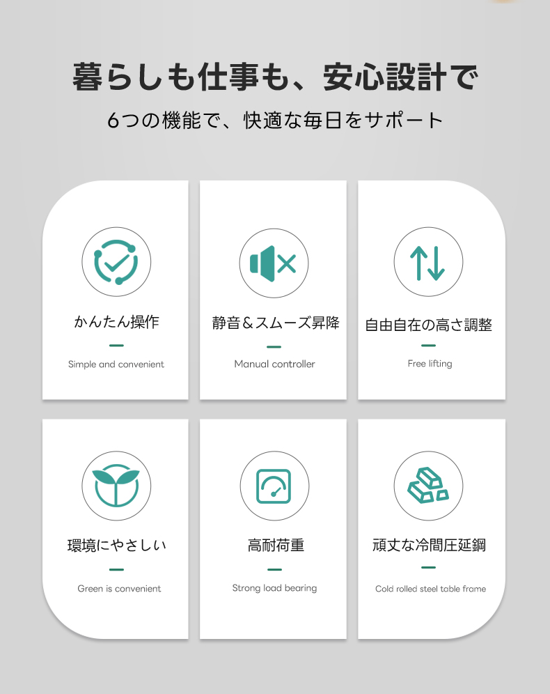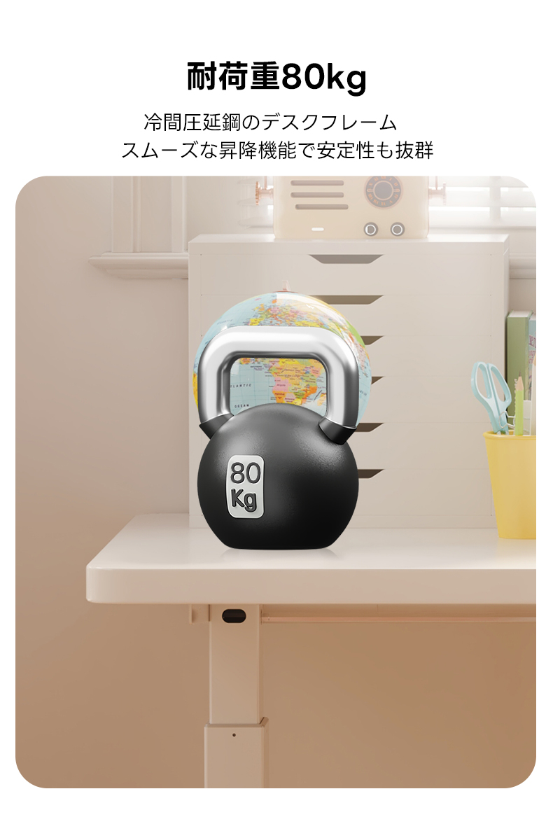 - 【静音設計で快適な使用感】:昇降時の騒音は45dB以下で、静かにスムーズに調整可能です。最大80kgの耐荷重を誇り、デスク上に多くのアイテムを置いても安心して使用できます。