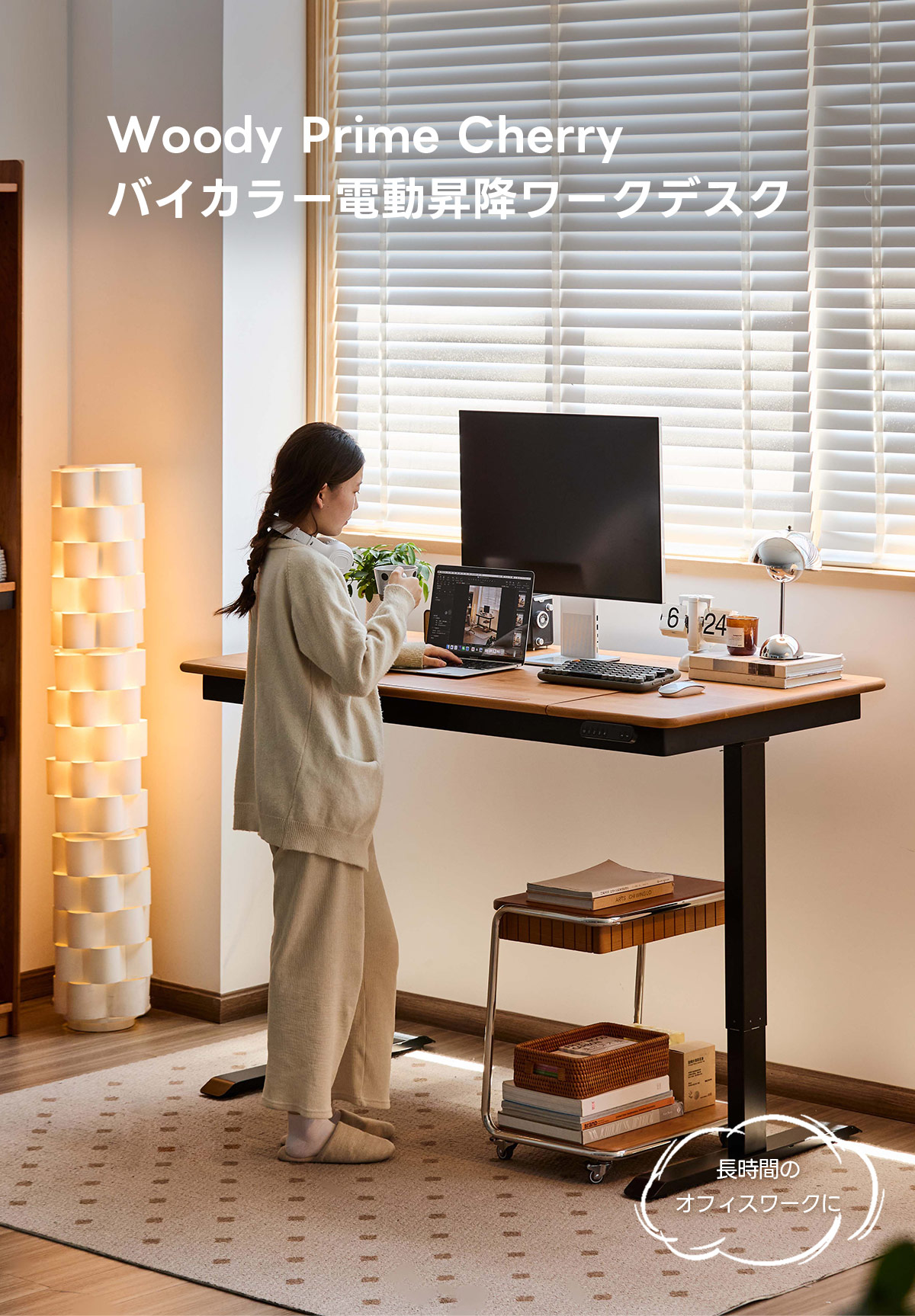 Woody Prime Cherryバイカラー電動昇降ワークデスク