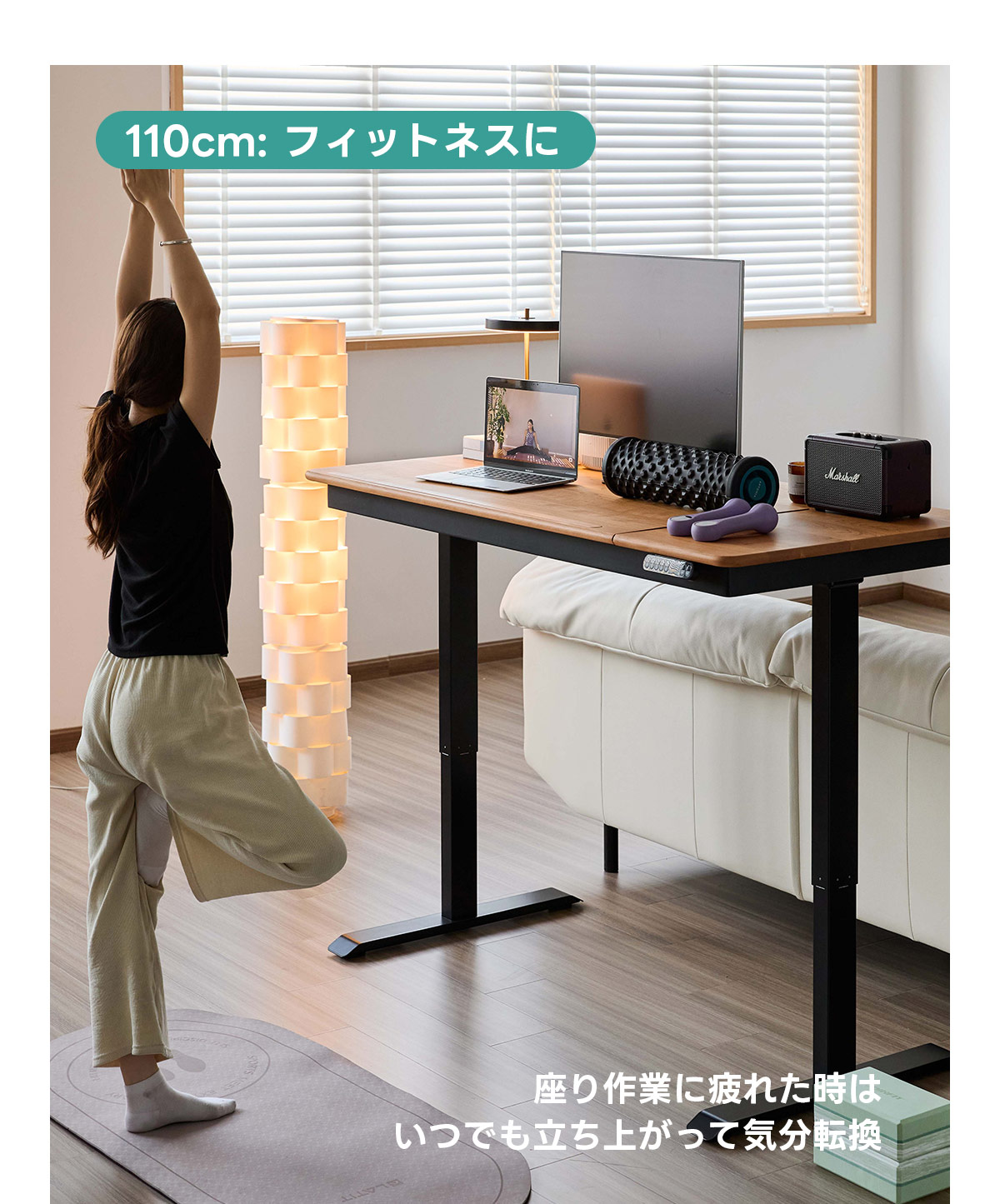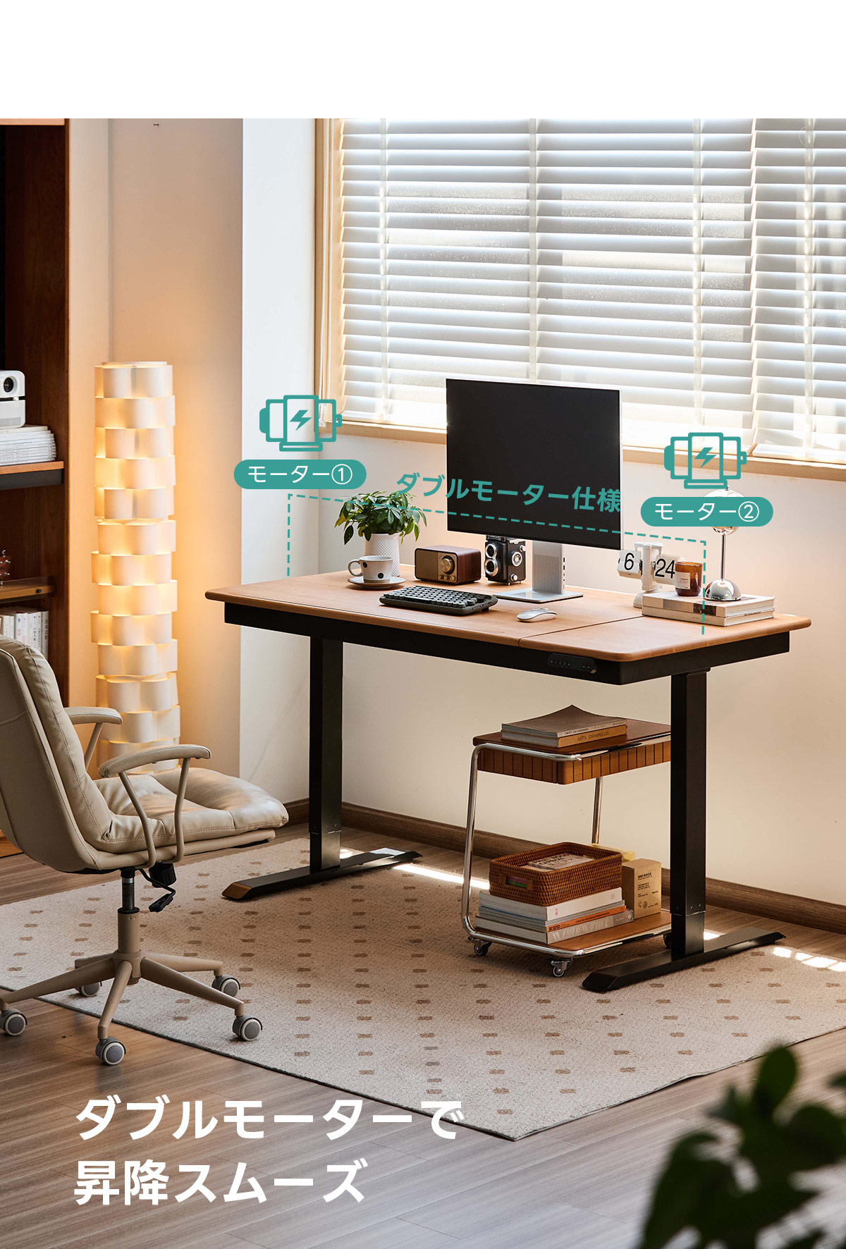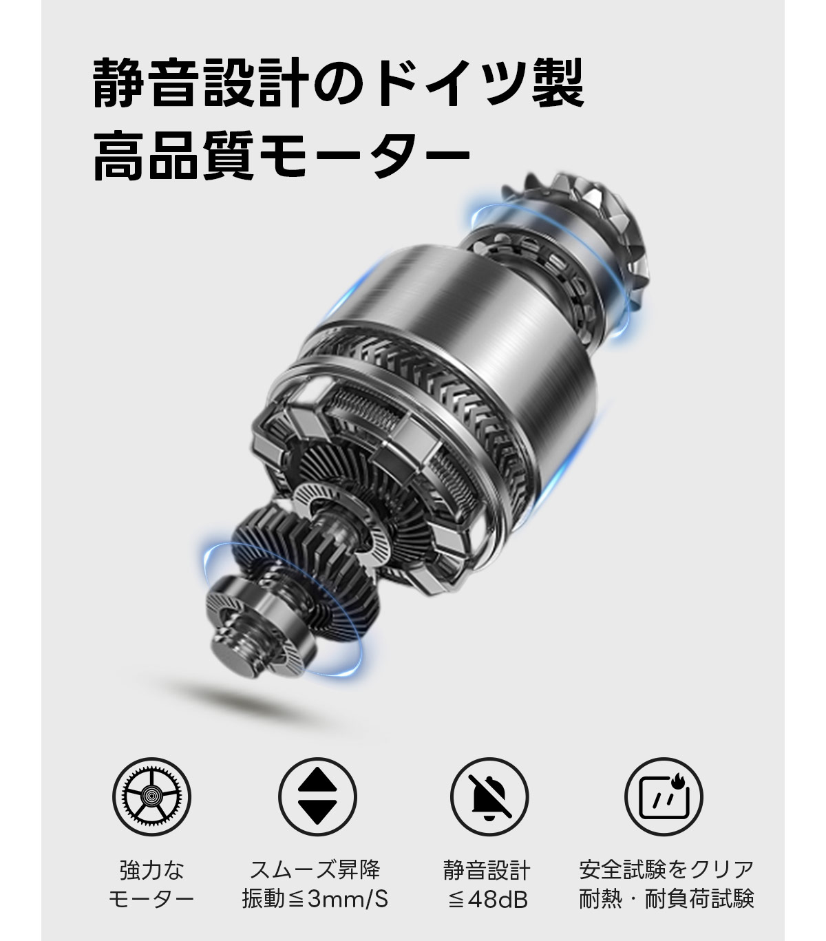 - 【電動昇降機能で快適作業】:このワークデスクは、電動昇降機能を搭載しており、73cmから114cmまでの高さ調整が可能です。ドイツ製の高品質モーターにより、スムーズで静かな昇降を実現。座ったままでも立ったままでも快適に作業できます。