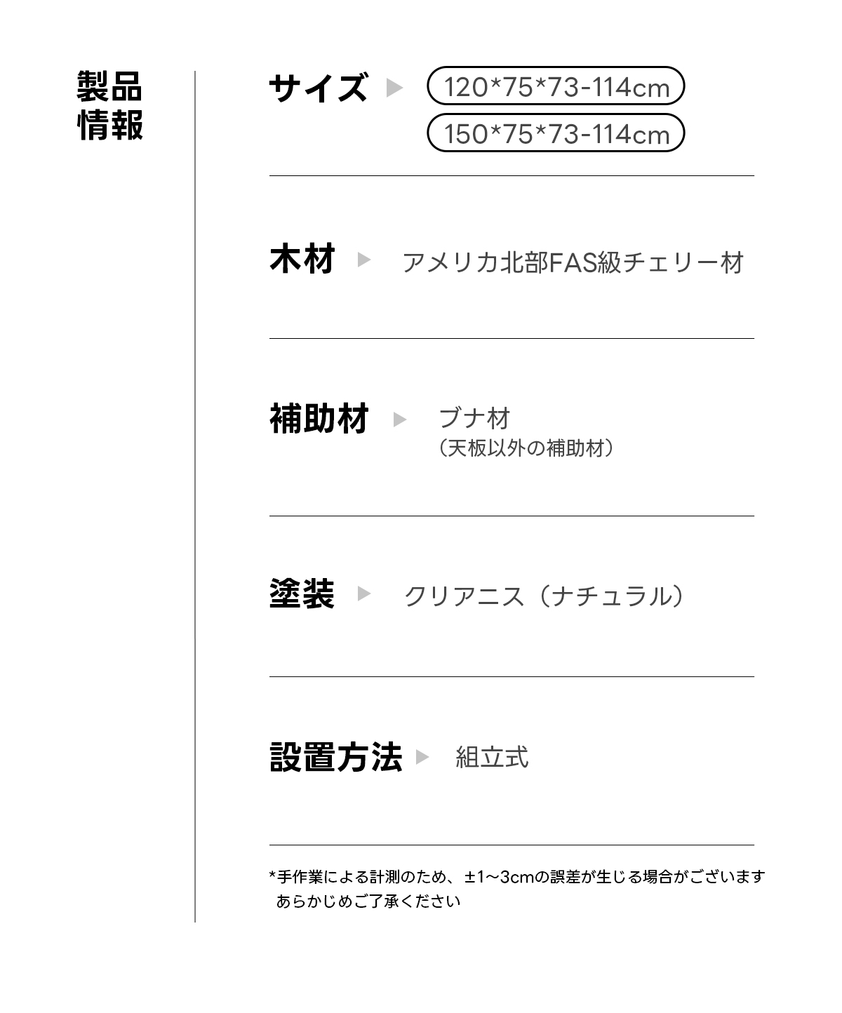 - 【高級チェリー材とデザイン】:アメリカ北部FAS級チェリー材を使用し、温かみのある手触りと滑らかさを実現。ライトブラウンのバイカラーデザインがどんなインテリアにもマッチし、シンプルモダンな雰囲気を演出します。