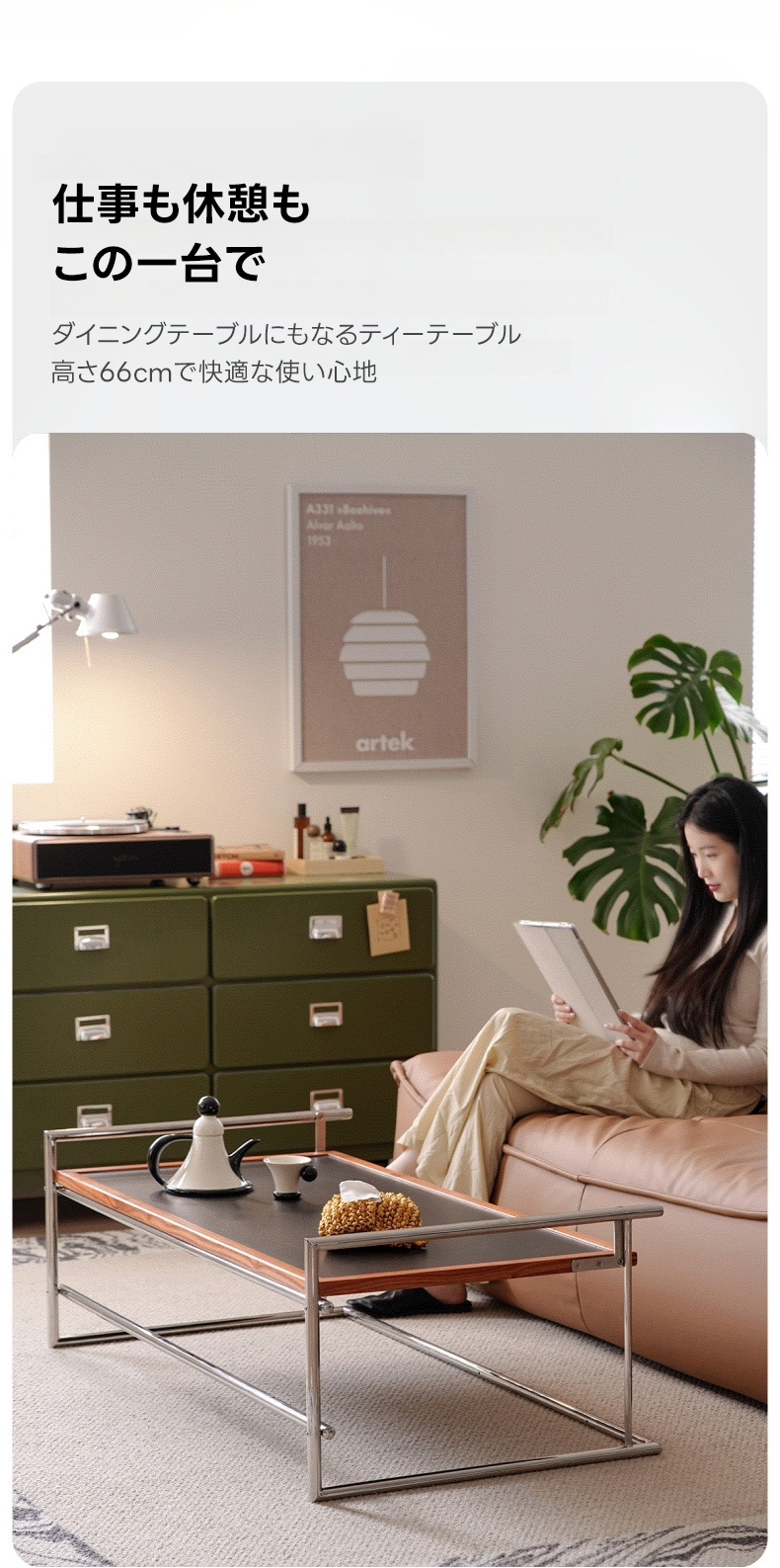 - 【幅広い適用性】:一人暮らしからカップル、ファミリーまで幅広いニーズに対応。リビングテーブルやデスクとして、様々な生活シーンで活躍します。