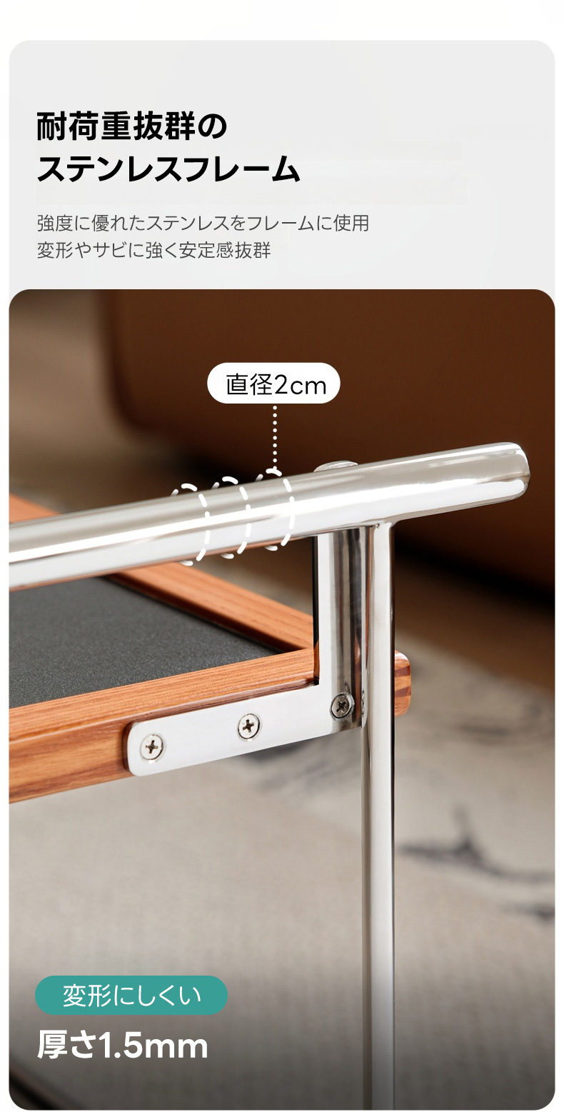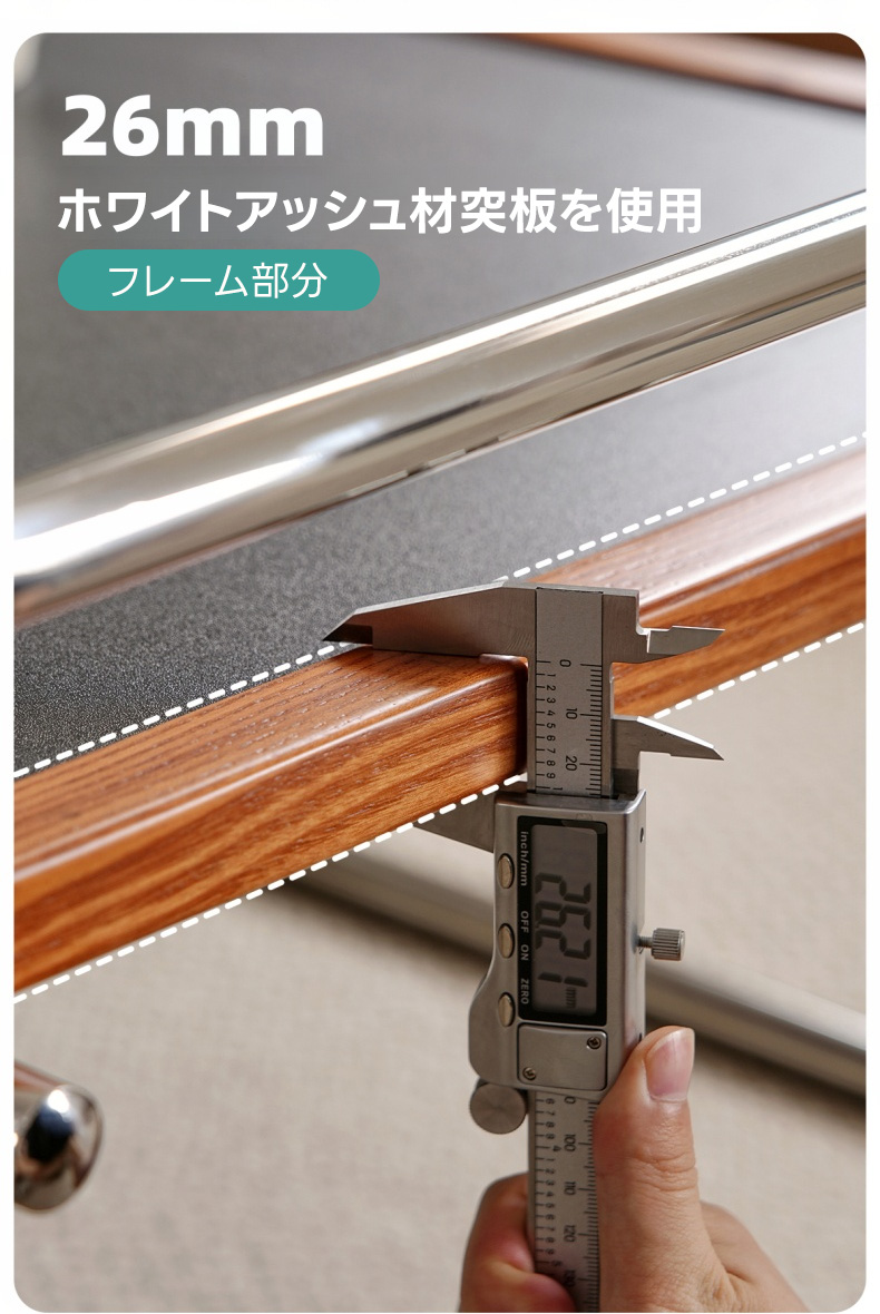 - 【高品質素材とデザイン】:合成板とホワイトアッシュ材を使用し、耐久性と美しさを両立。ステンレスフレームは強度が高く、変形や錆に強い設計です。