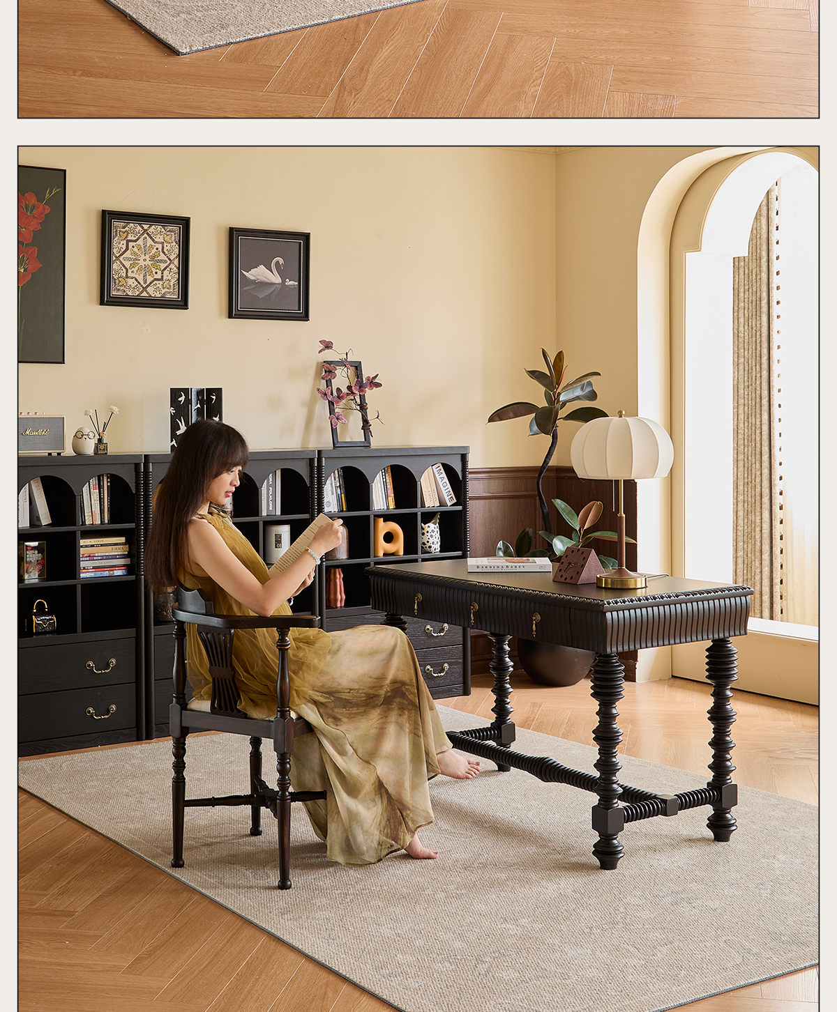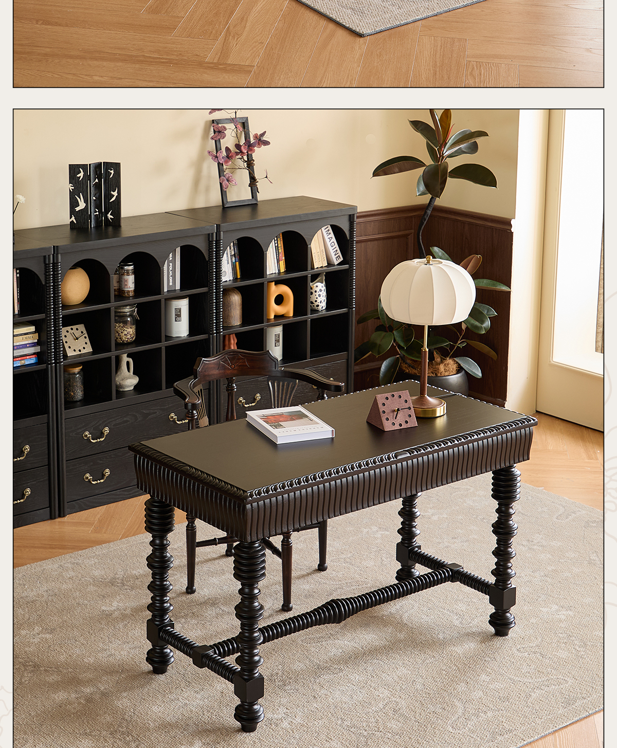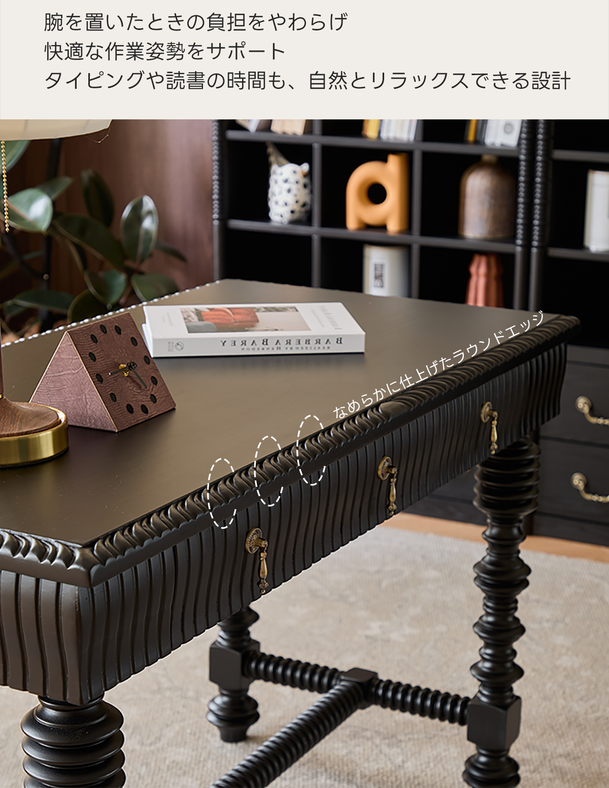 - 【クラシックデザインと現代の機能性】このデスクはクラシックなデザインと現代の機能性を兼ね備え、洗練された曲線と細部の美しさが際立ちます。ブラックの木材を使用し、どんなインテリアにも調和します。
