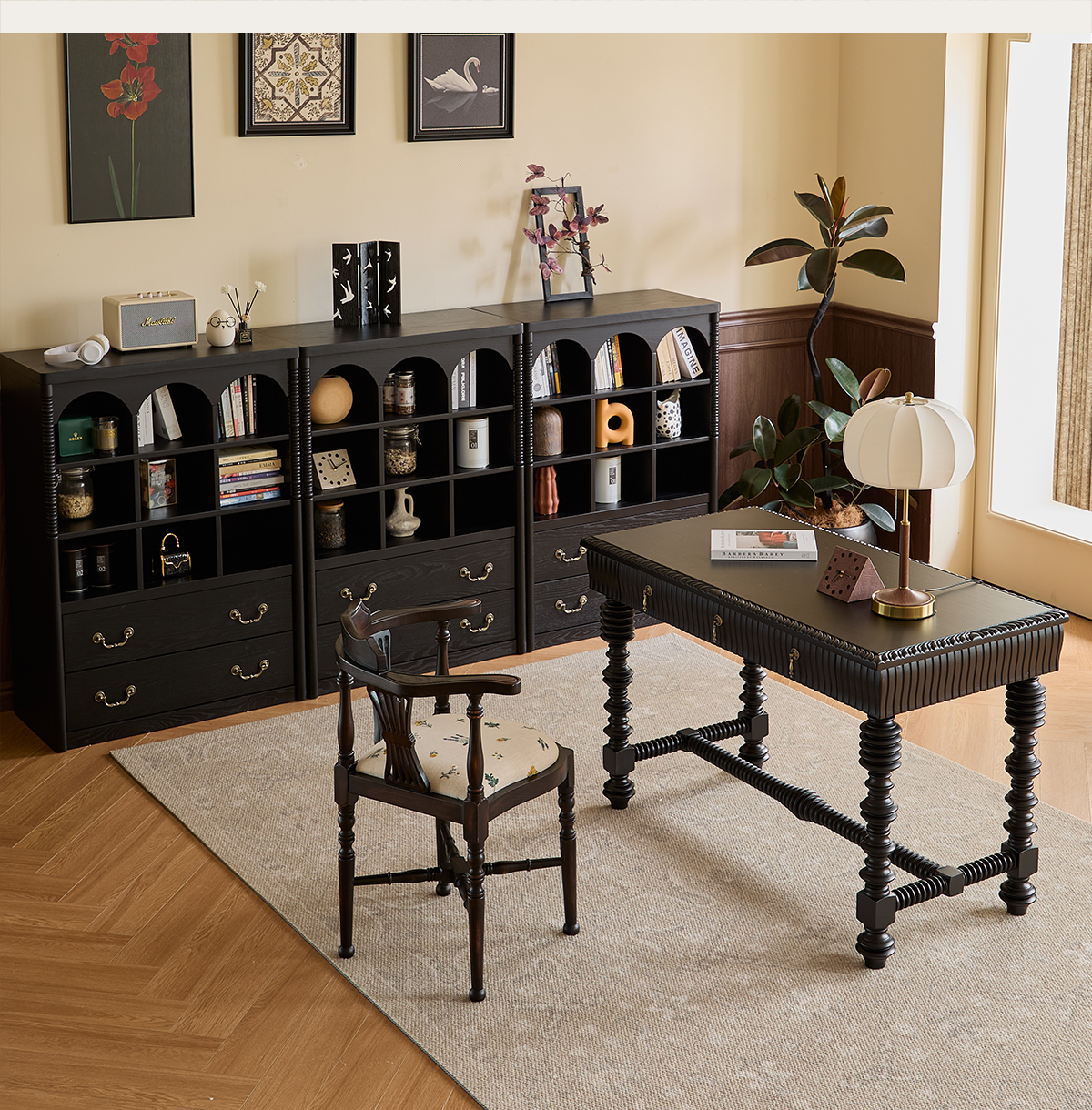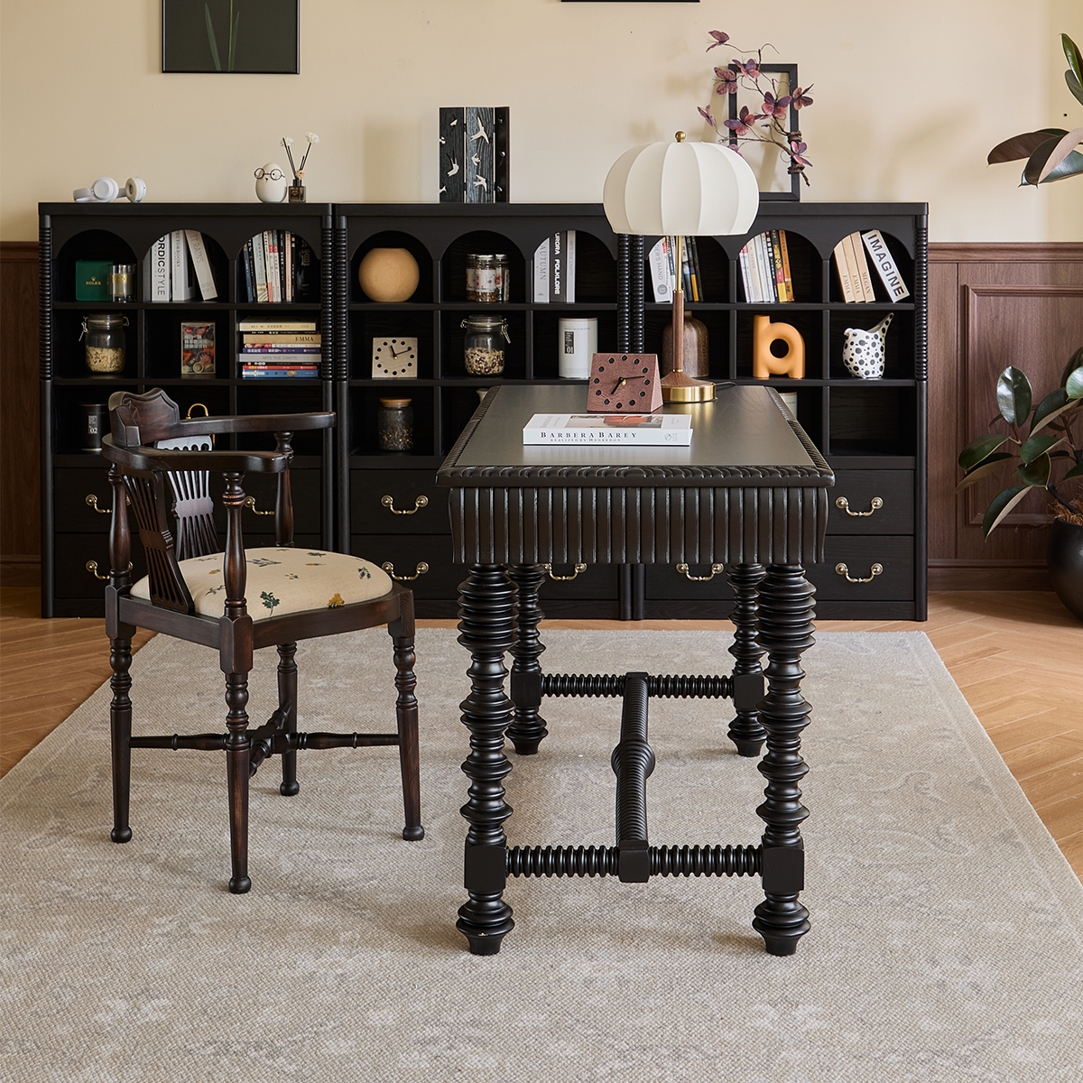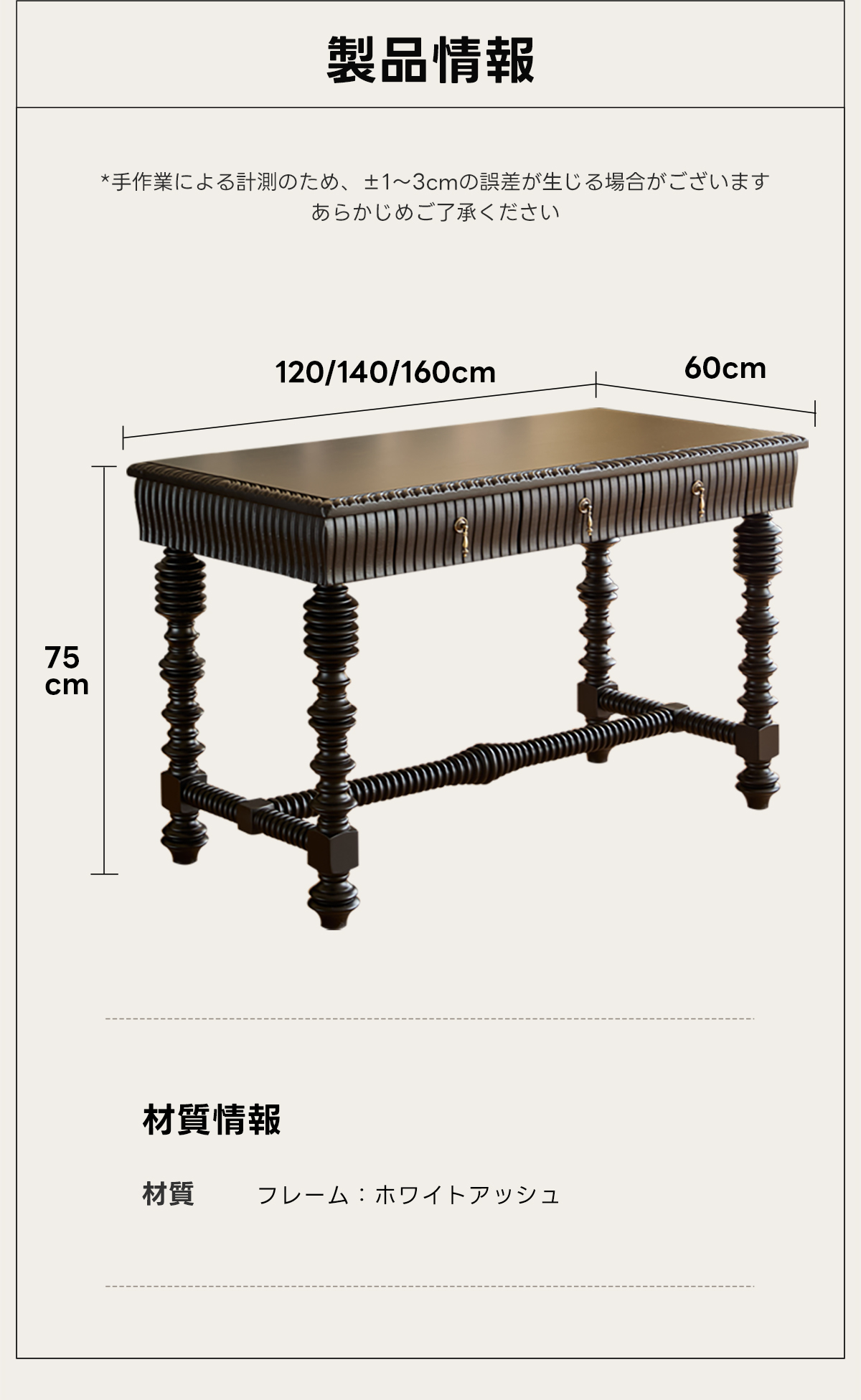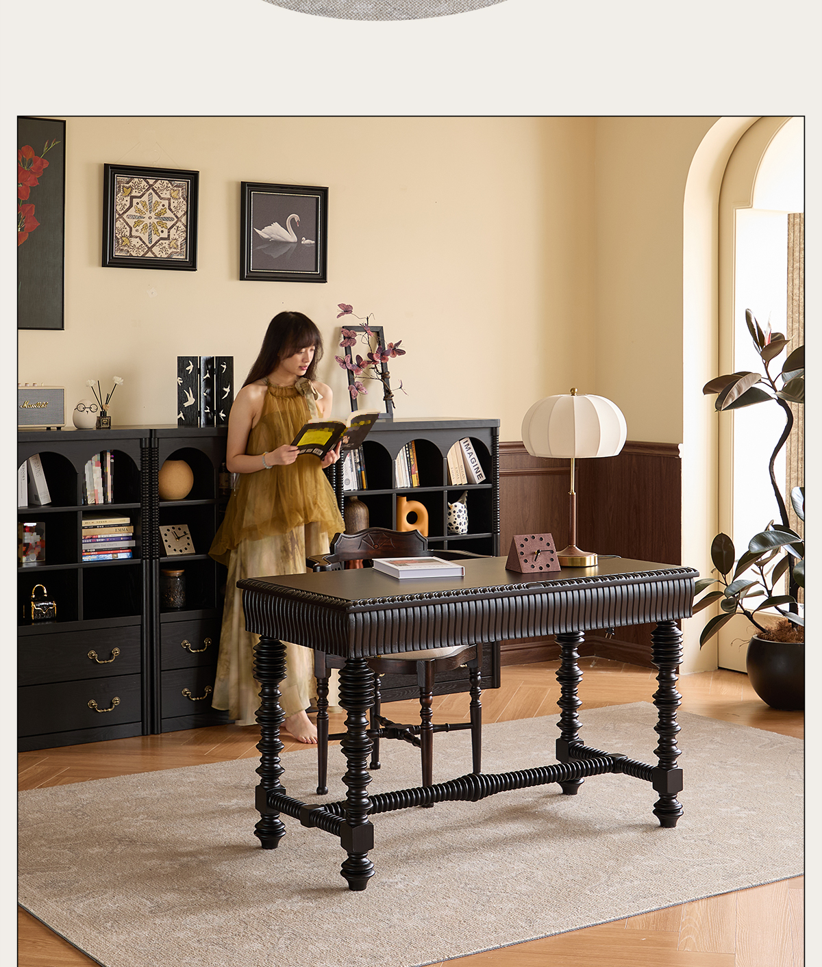 - 【クラシックデザインと現代の機能性】このデスクはクラシックなデザインと現代の機能性を兼ね備え、洗練された曲線と細部の美しさが際立ちます。ブラックの木材を使用し、どんなインテリアにも調和します。