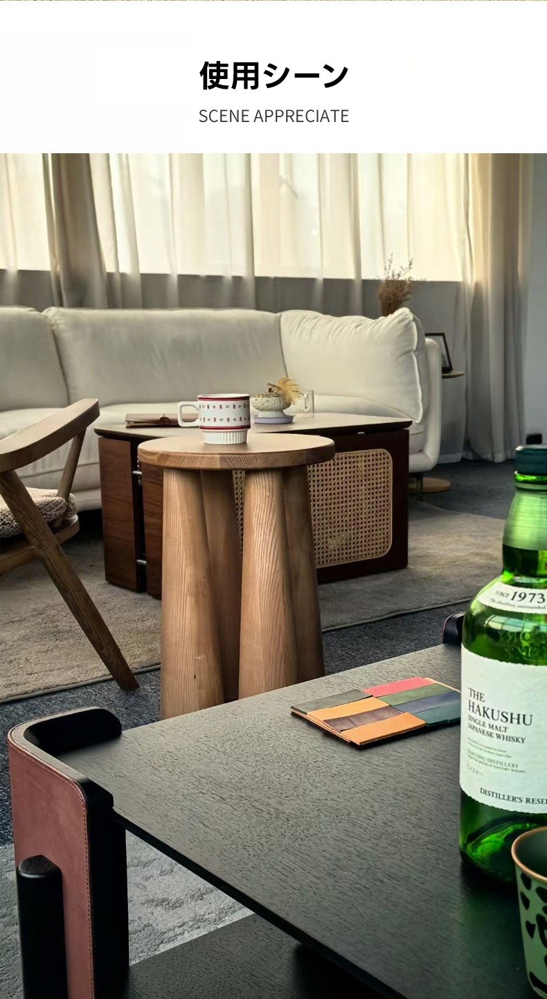 - 【多機能なサイドテーブル】:クアッドウッドサイドテーブルは、リビングやベッドサイドでの使用に最適な多機能テーブルです。円形の天板が飲み物や小物を置くのに便利で、日常生活をサポートします。