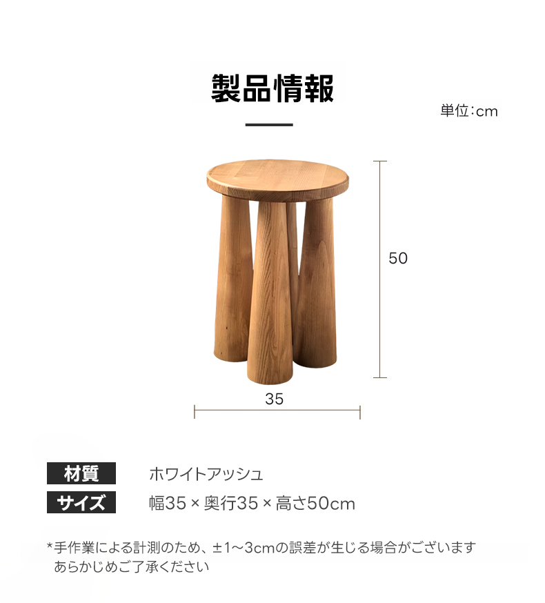 - 【高品質な素材とデザイン】:ホワイトアッシュ材を使用し、美しい木目が特徴です。幅35cm、奥行35cm、高さ50cmのコンパクトサイズで、場所を取らずに設置可能。自然の風合いを楽しめるデザインです。