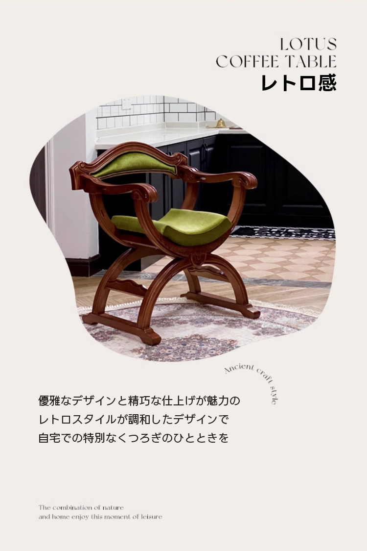 - 【クラシックなデザインと快適さの融合】:レトロスタイルチェアは、クラシックなデザインと現代の快適さを見事に融合。タイ産オークの木製フレームが優雅で温かみのある曲線を描き、リビングに洗練された雰囲気をもたらします。