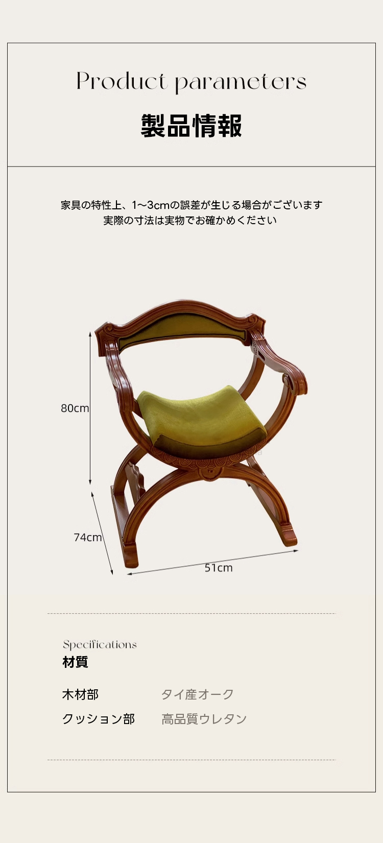 - 【高品質な素材とデザイン】:タイ産オークの頑丈な木脚は安定感と耐久性を提供し、長く愛用できます。自然な木目や節目がそれぞれのチェアに唯一無二の個性を与えます。