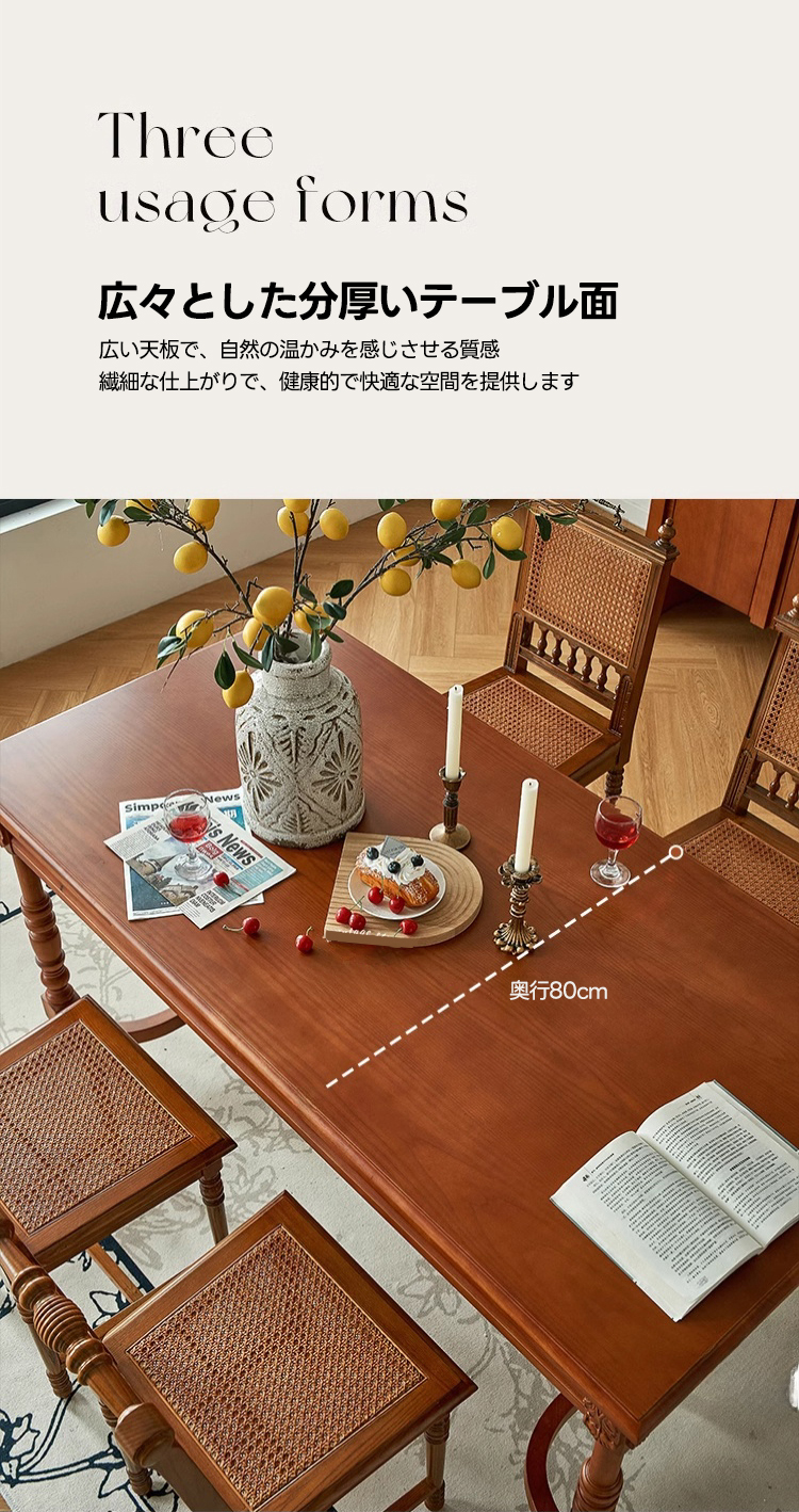 - 【多様なシーンにマッチ】: カップルやファミリー、一人暮らしの方にも最適なこのテーブルは、食事や集まりの場をより豊かにします。自然の温かみを感じさせる質感が、健康的で快適な空間を提供します。