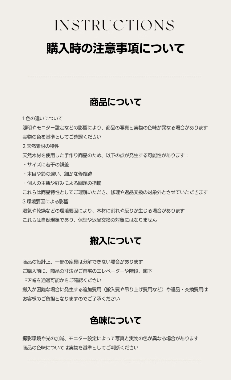 ※搬入不可等の理由による注文キャンセルは、ご返送にかかる費用をお客様にご請求いたします。ご注文前に大型家具の搬入方法をご確認ください。