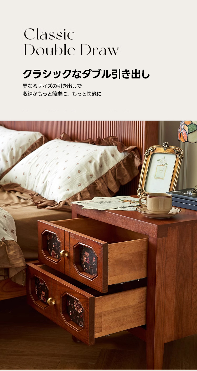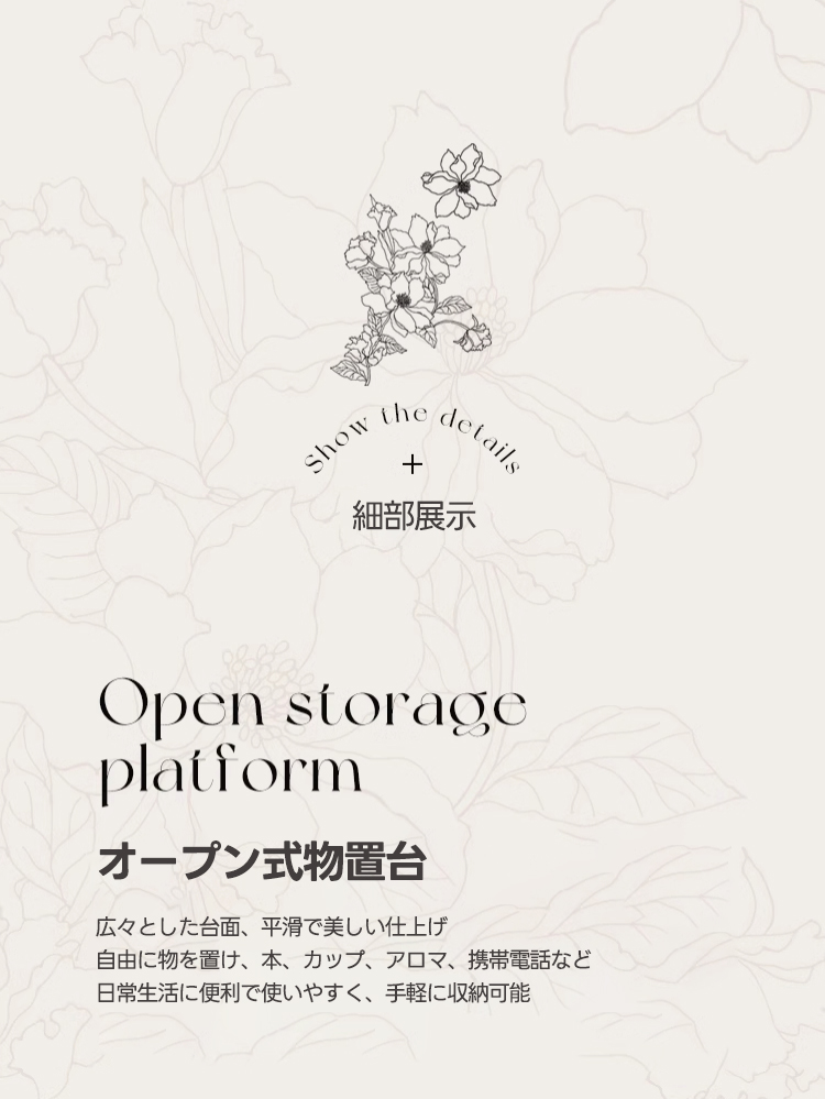 - 【使いやすさを追求】:引き出しや棚が備わっており、日常の小物や雑貨をすっきり収納できます。使いやすさを考慮した設計で、取り出しやすく整理整頓が簡単です。寝室の整理整頓に役立ち、快適な空間を提供します。