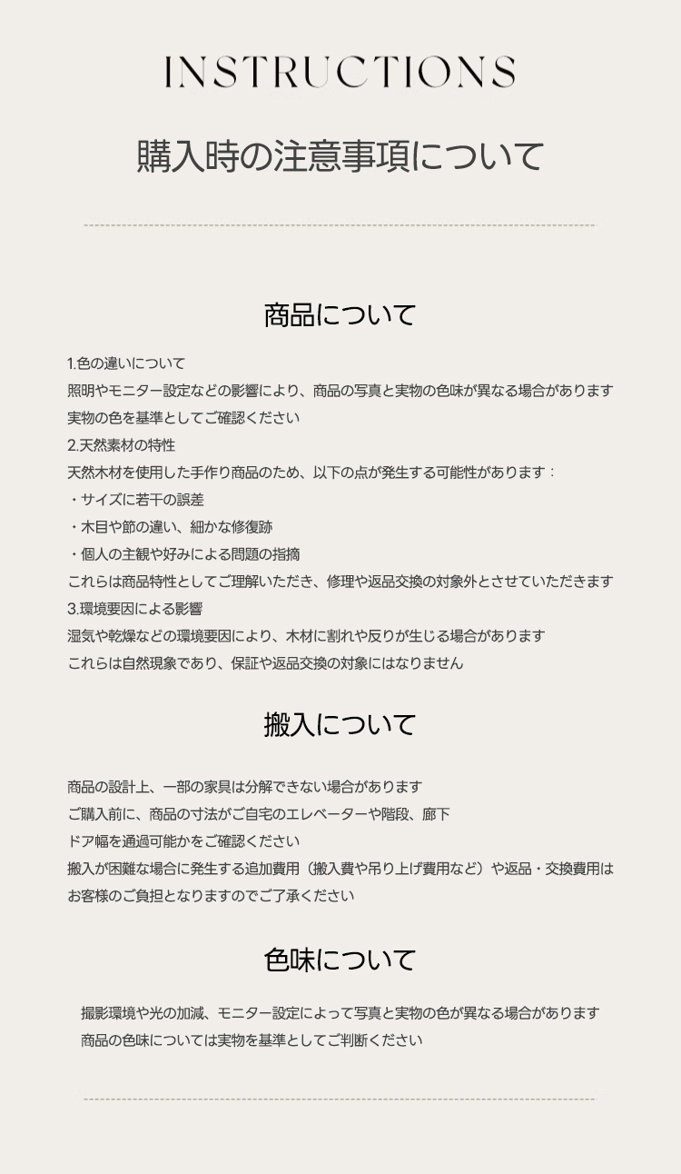 ※搬入不可等の理由による注文キャンセルは、ご返送にかかる費用をお客様にご請求いたします。ご注文前に大型家具の搬入方法をご確認ください。