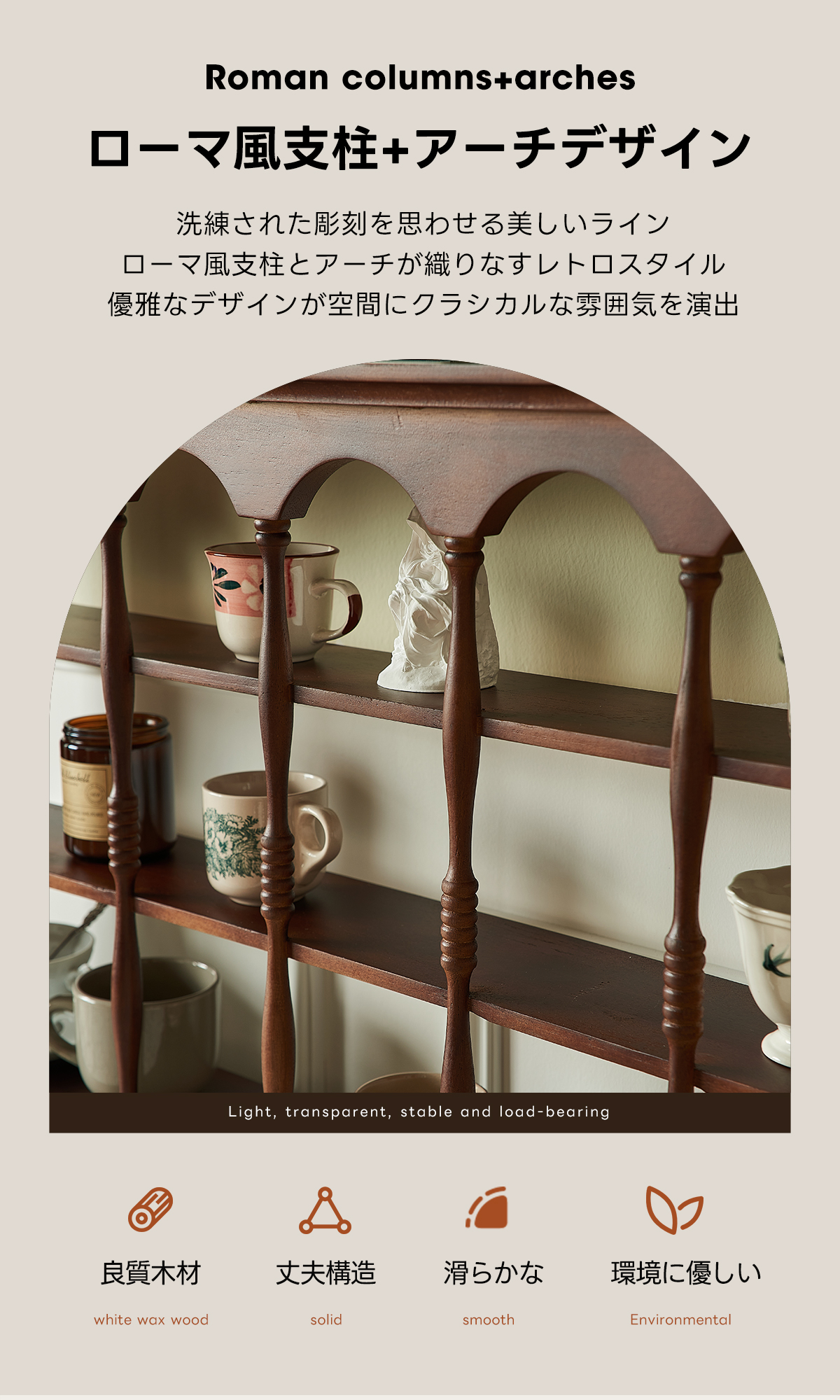 - 【高品質素材とクラシックデザイン】高品質なラバーウッドを使用し、環境に優しい水性塗装が施されています。ローマ柱とアーチ型のデザインが特徴的で、ヴィンテージ感あふれる雰囲気をお部屋にプラスします。