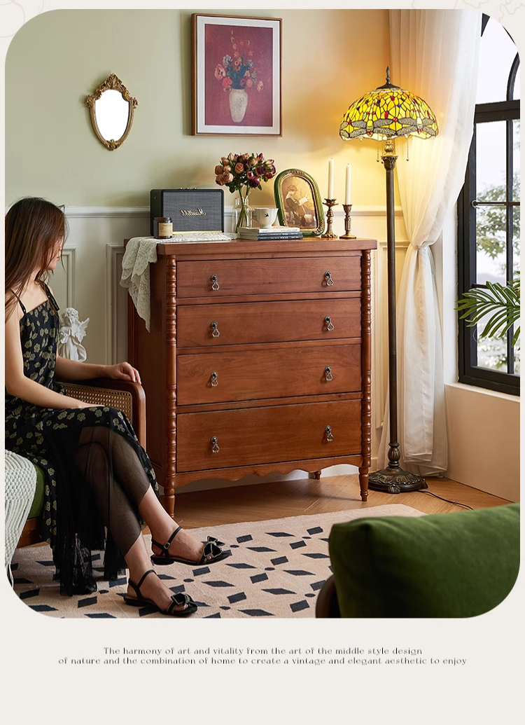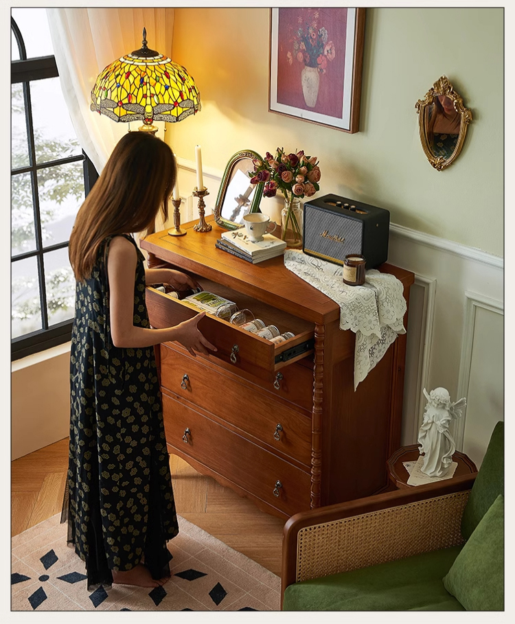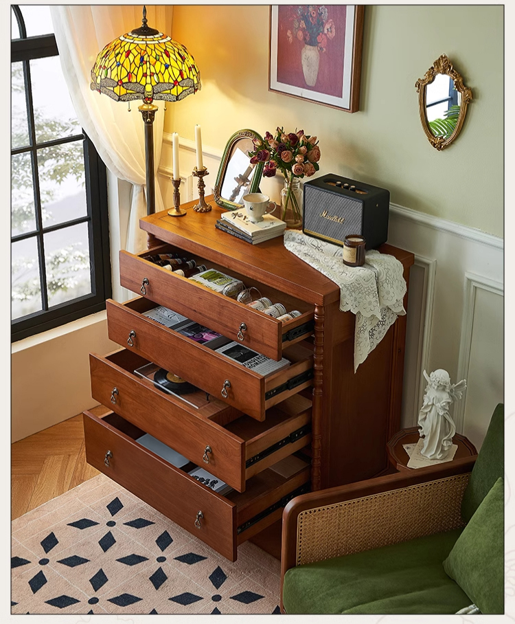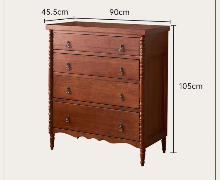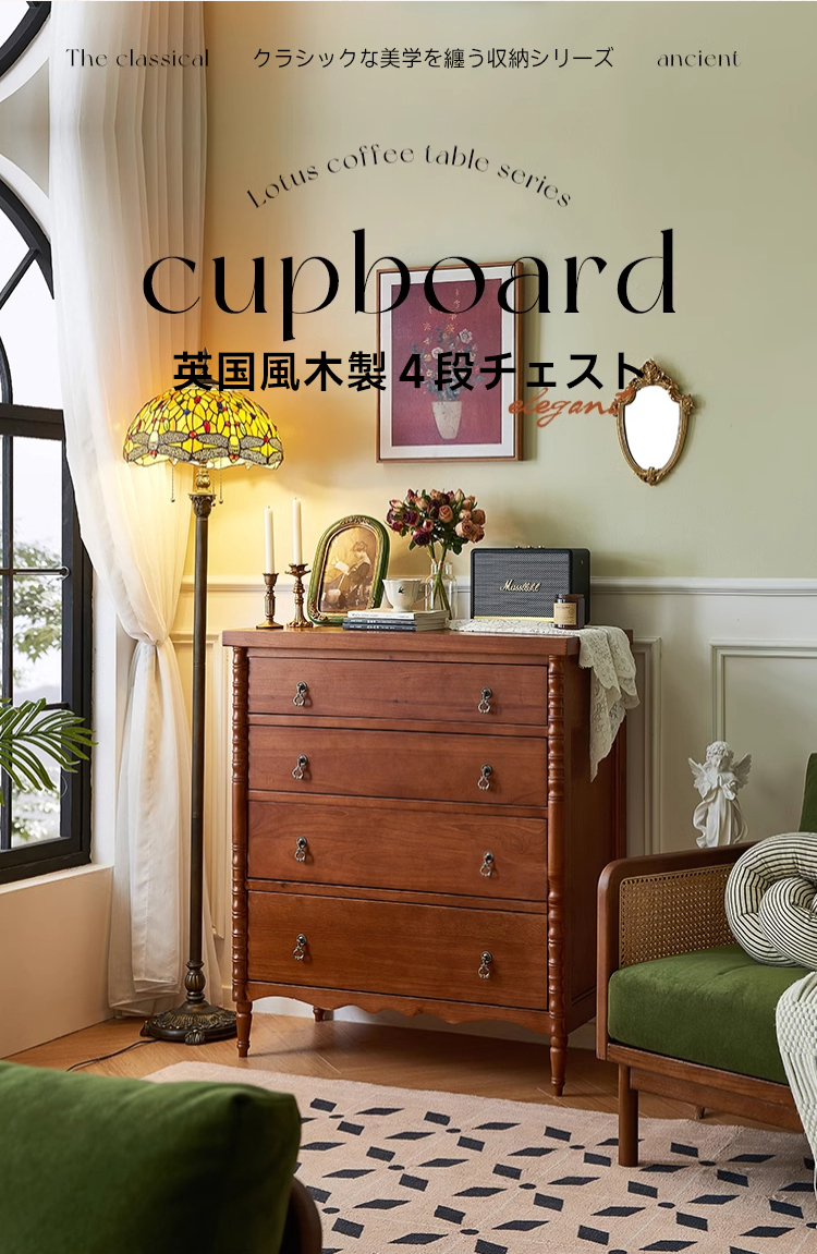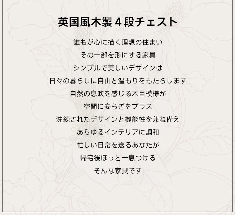 英国風木製4段チェスト