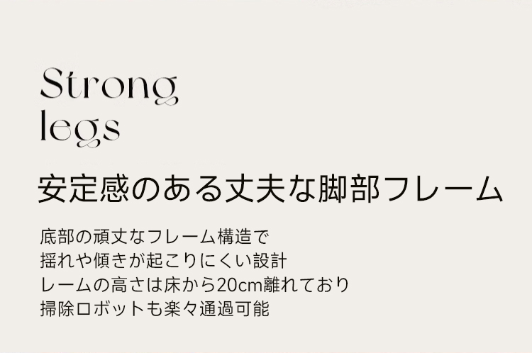 - 【快適な使用体験】ちょうどいい高さで物の出し入れがしやすく、頑丈な脚部フレームで安定感も抜群。脚部の高さは14cmで掃除ロボットも楽々通過可能です。