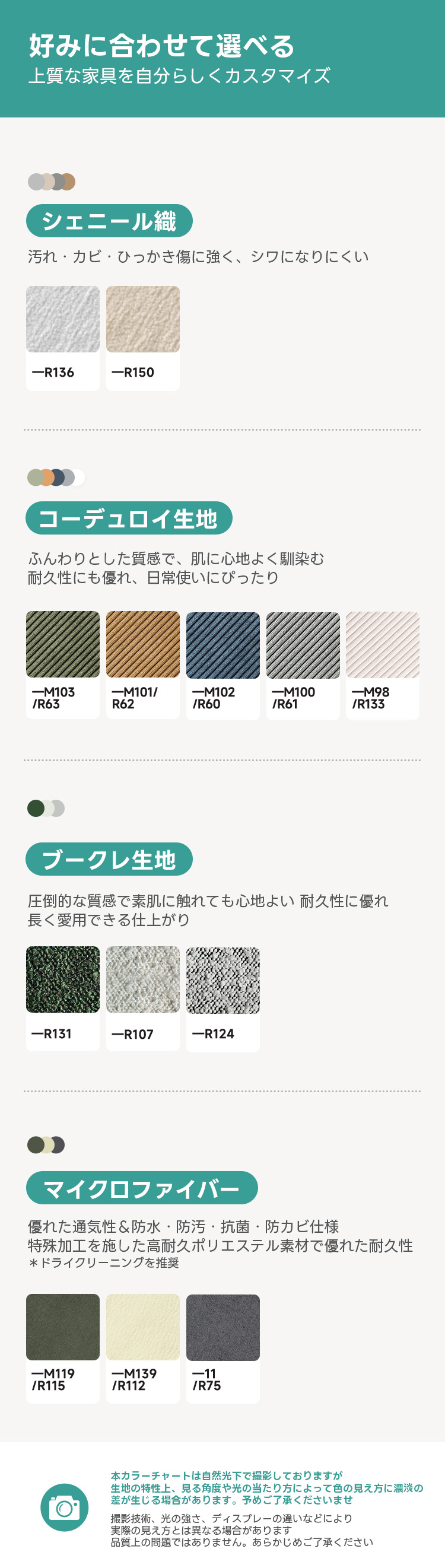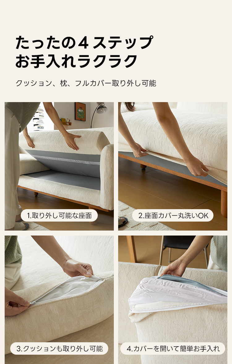 - 【ユーザーに優しい機能】カスタマイズ可能で、お好みに合わせてシェニール織やコーデュロイ生地、ブークレ生地、マイクロファイバーなどから選べます。クッションやカバーは取り外し可能で、洗濯も簡単に行えます。