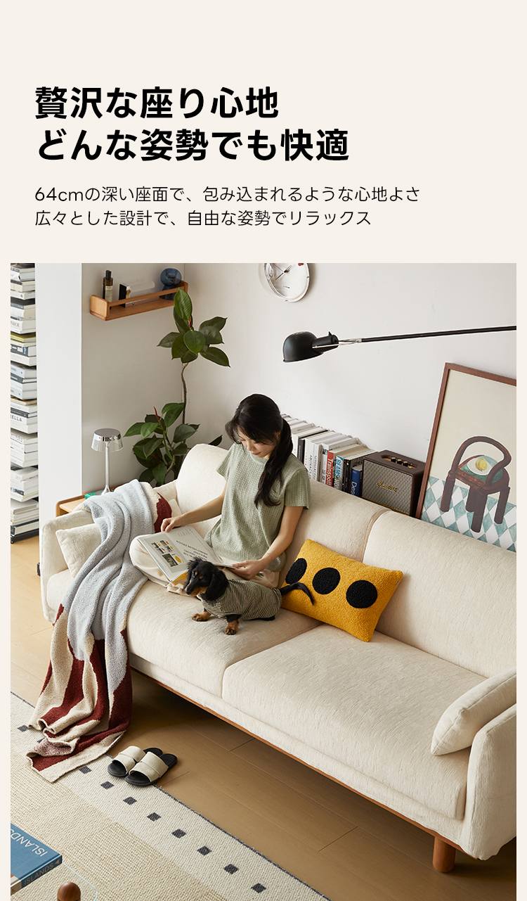 - 【快適な座り心地】高反発ウレタンを使用したクッションが体を優しく支え、長時間座っても疲れにくい設計です。シェニール織の柔らかさと快適さが、リビングでのリラックスタイムをより豊かにします。