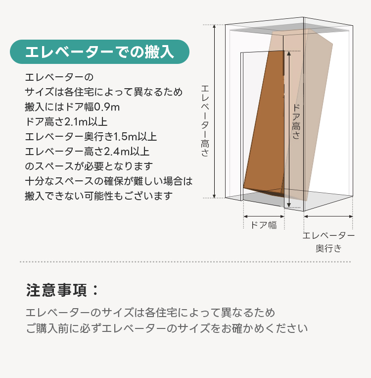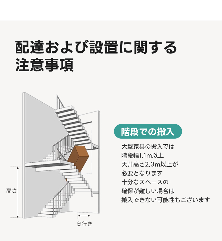 ※搬入不可等の理由による注文キャンセルは、ご返送にかかる費用をお客様にご請求いたします。ご注文前に大型家具の搬入方法をご確認ください。