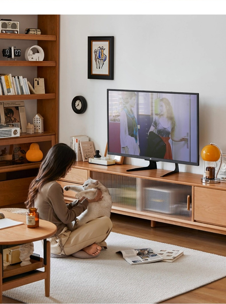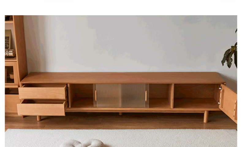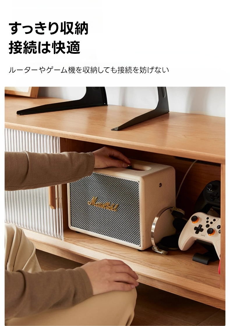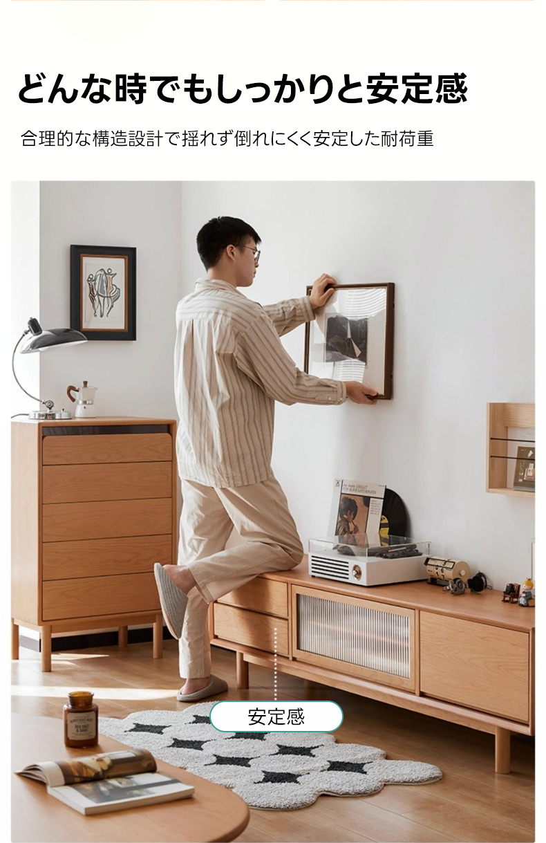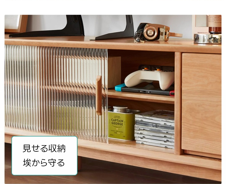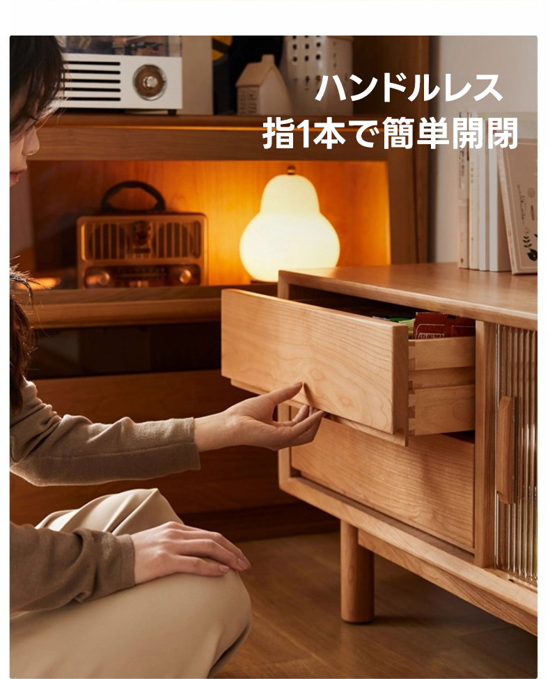 - 【高品質な素材とデザイン】北米産FASグレードのチェリー材を使用したテレビキャビネットは、ホワイトオークとブナ材と組み合わせることで、耐久性と美しさを兼ね備えています。リブガラス扉がスタイリッシュな印象を与え、収納物を見せることができます。