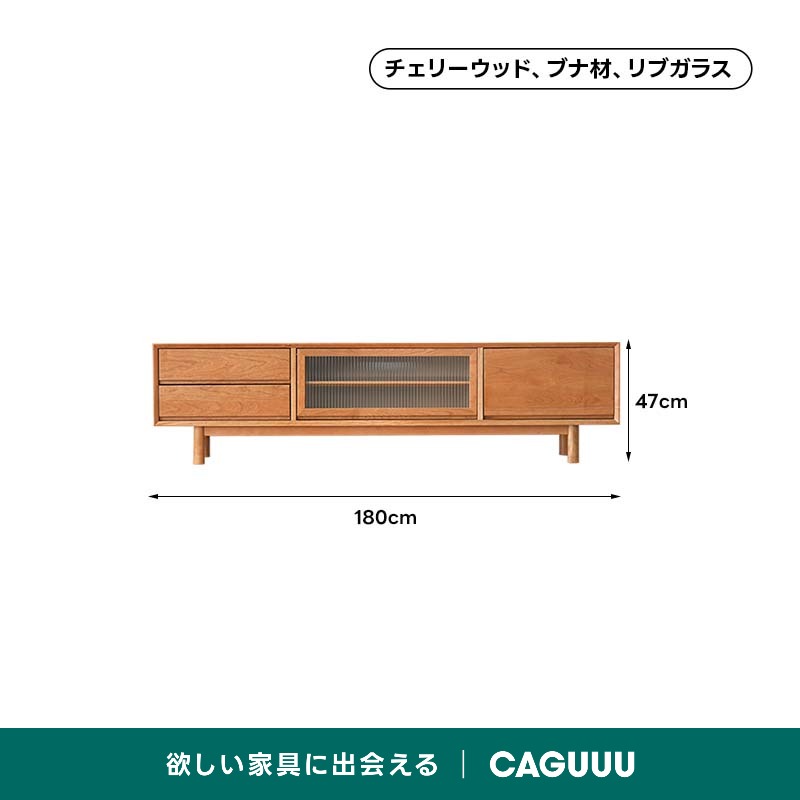 - 【どんなインテリアにも調和するナチュラルデザイン】チェリー材の温かみのある色合いとリブガラスの絶妙な透け感が、どんなインテリアにも調和し、洗練された空間を演出します。カップルやファミリー、一人暮らしの方にも最適です。