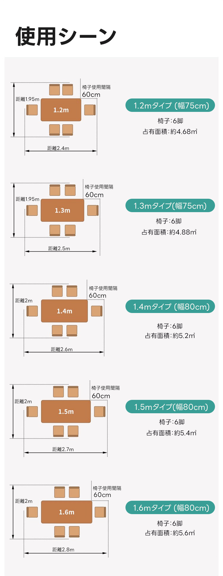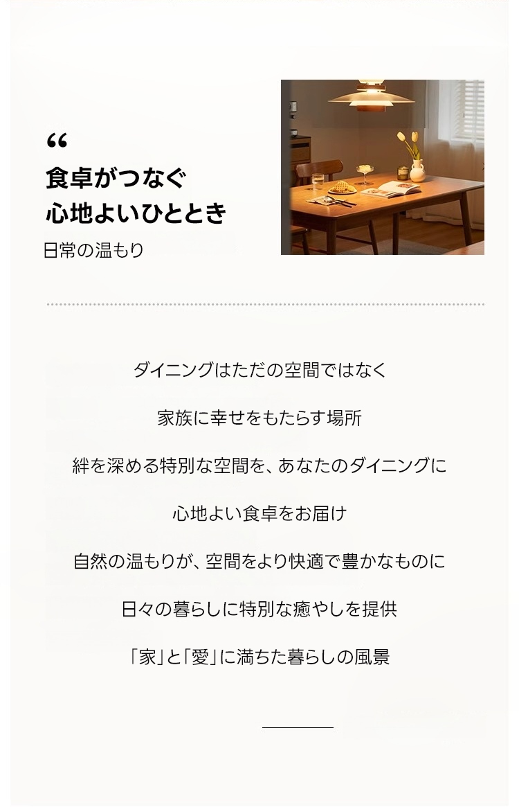 - 【多様なシーンに対応】カップルやファミリー、一人暮らしの方に最適で、日常の食事から特別な集まりまで、様々なシーンで活躍します。120cmから160cmまでのサイズ展開で、どんなダイニングスペースにも対応可能です。