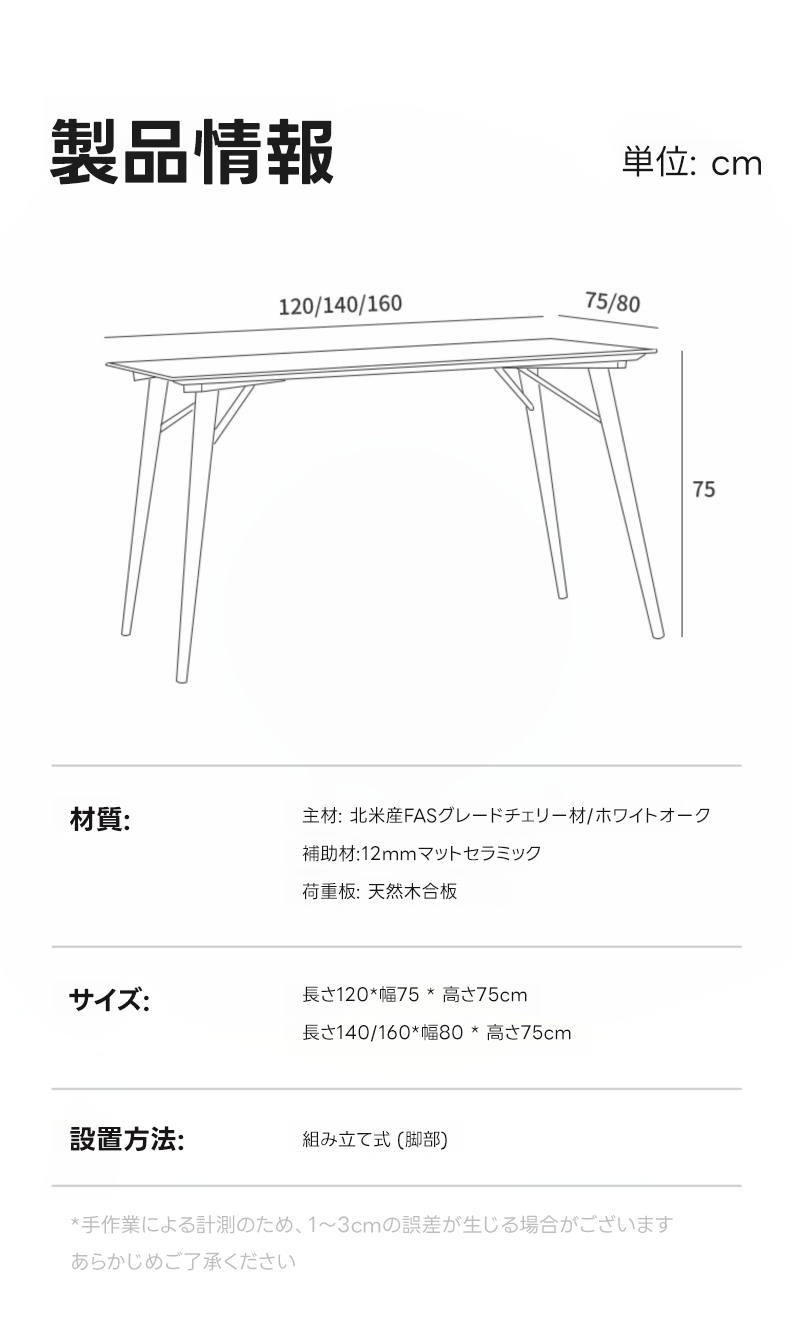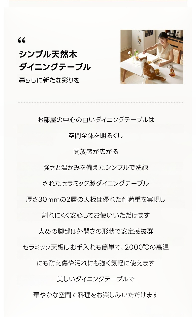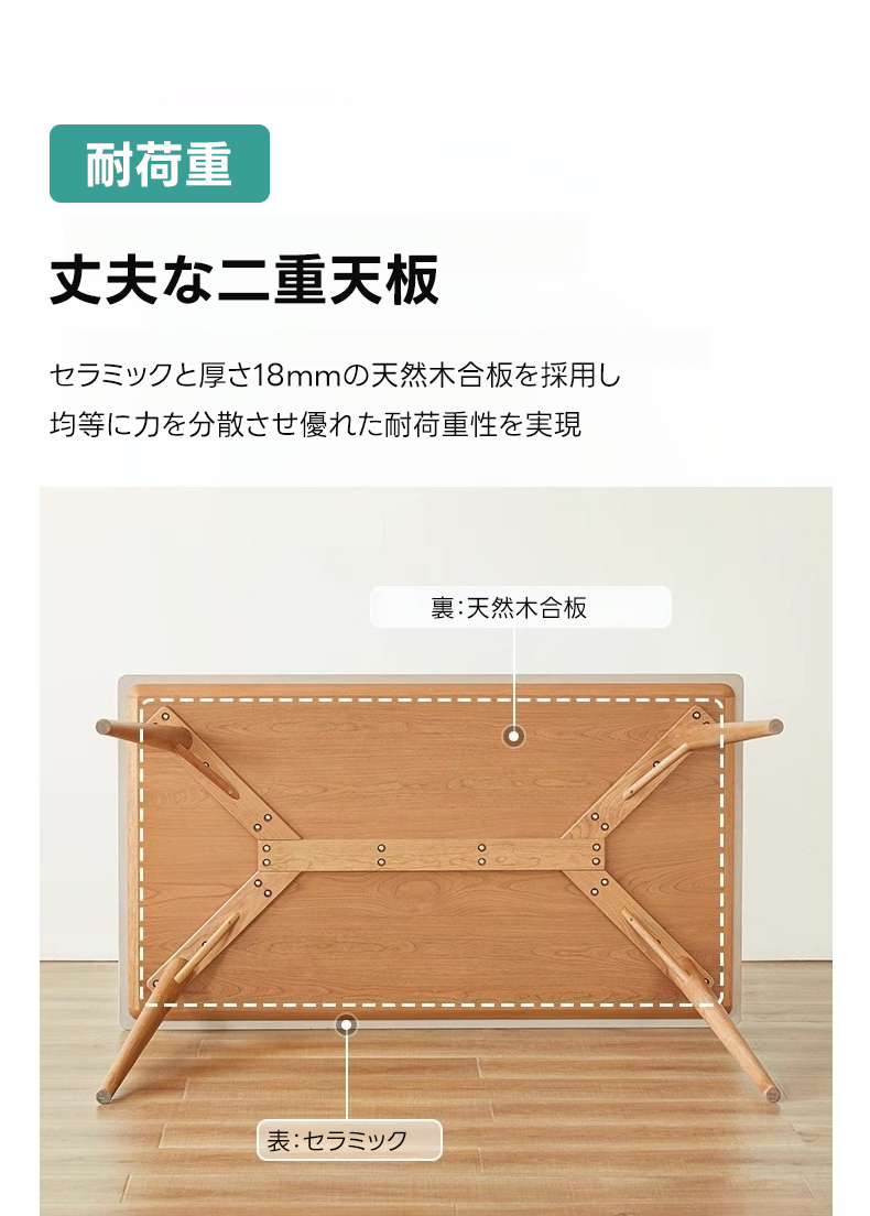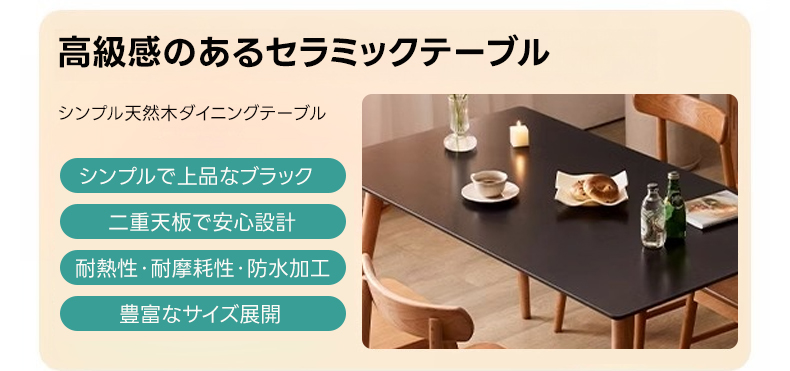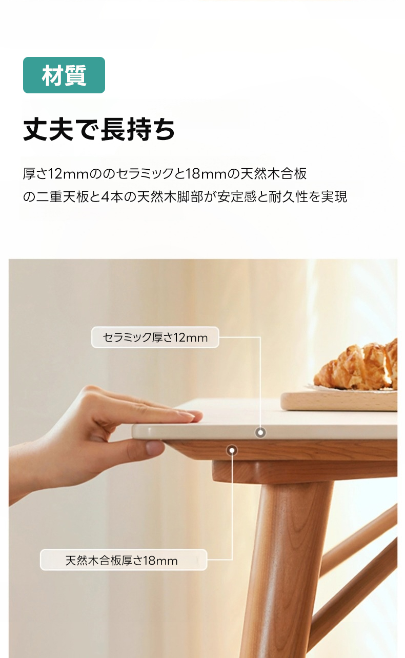 - 【優れた耐荷重性と撥水加工】チェリー材を使用したダイニングテーブルは、12mmのセラミックと18mmの天然木合板の二重構造で、400kg以上の重さに耐えることができます。セラミックは2000℃の高温にも耐え、傷や汚れに強い撥水加工が施されているため、日常のメンテナンスが簡単です。