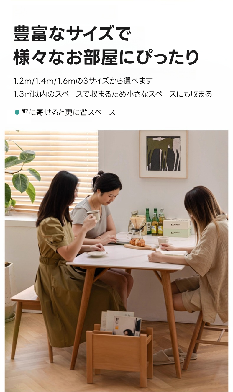 - 【多様なサイズと省スペース設計】120cm、140cm、160cmの3種類のサイズから選べるこのテーブルは、狭いスペースにもフィットし、壁に寄せて設置することでさらに省スペース化が可能です。カップルやファミリー、一人暮らしの方にも最適なサイズ展開です。