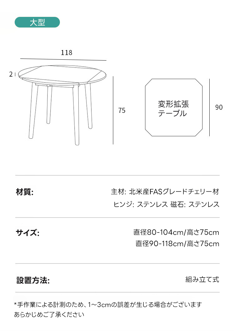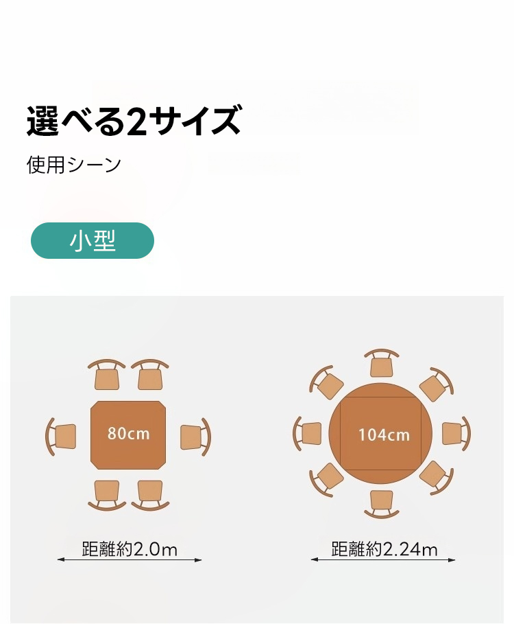 - 【幅広い適用性】:小型(直径80-104cm)と大型(直径90-118cm)の2サイズから選べるため、家庭のダイニングやリビングにぴったり。カップルやファミリー、一人暮らしの方にも最適なアイテムです。