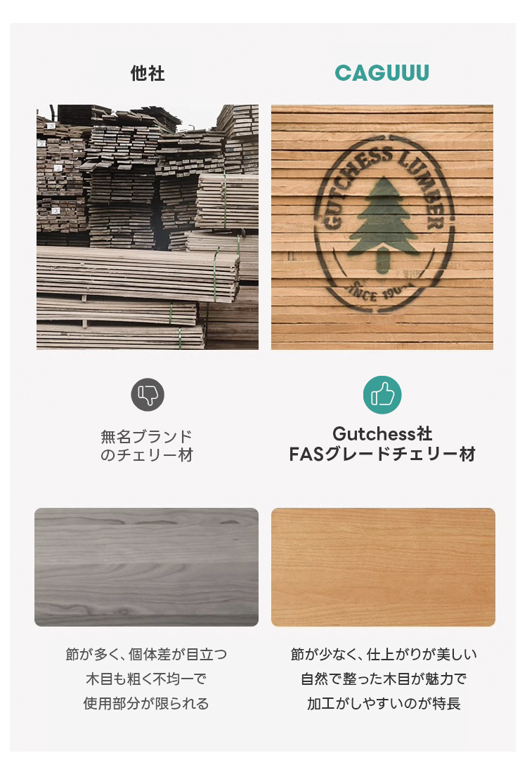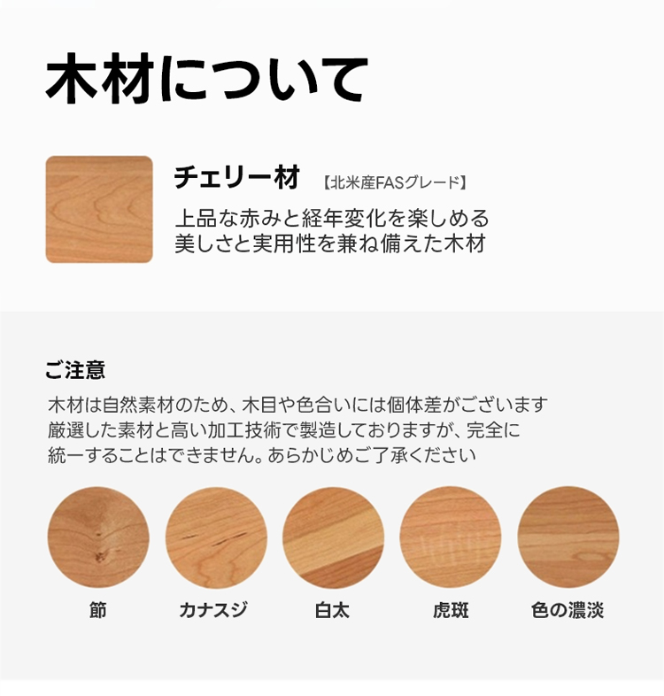- 【高品質素材とデザイン】:北米産FASグレードのチェリー材とホワイトオークを使用し、ヒンジにはステンレスを採用。耐久性と美しさを兼ね備えたデザインで、ナチュラルなライトブラウンの色合いがどんなインテリアにもマッチします。