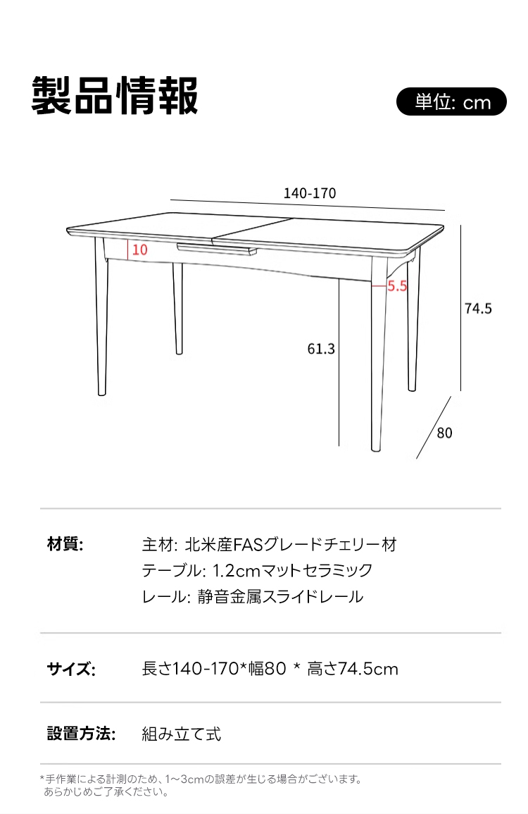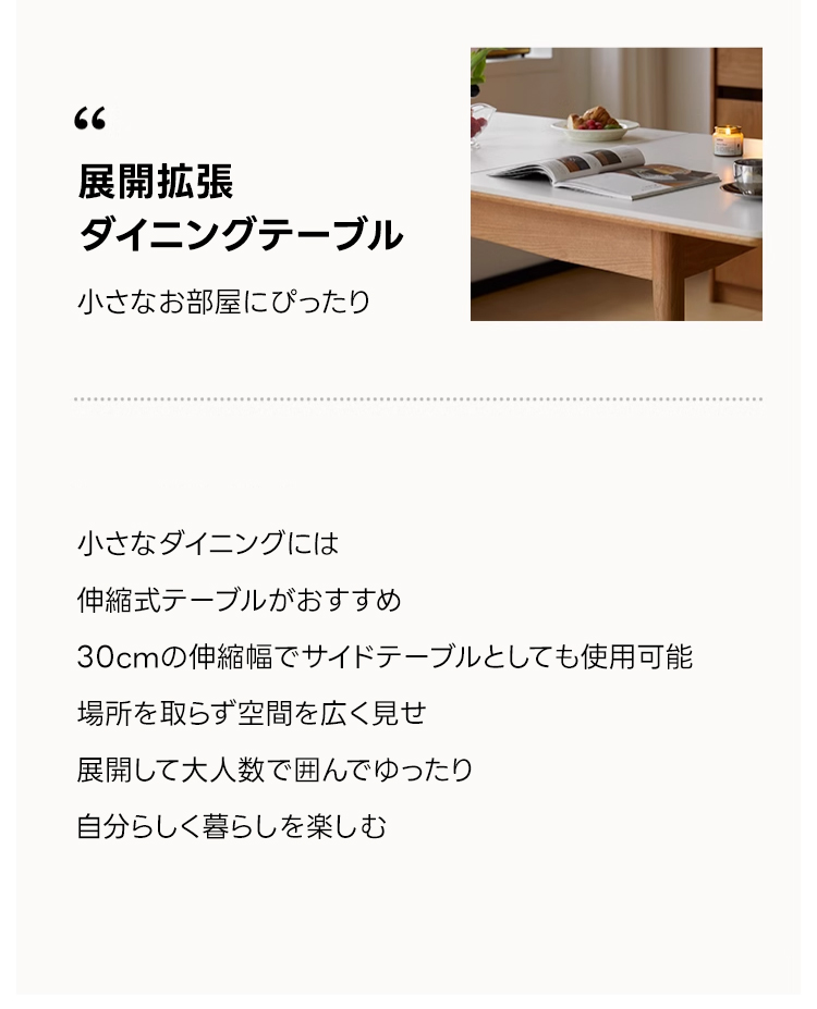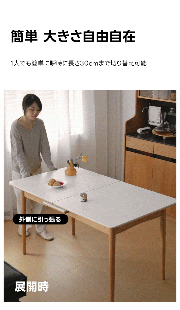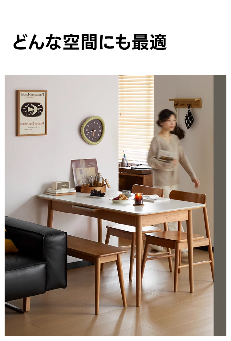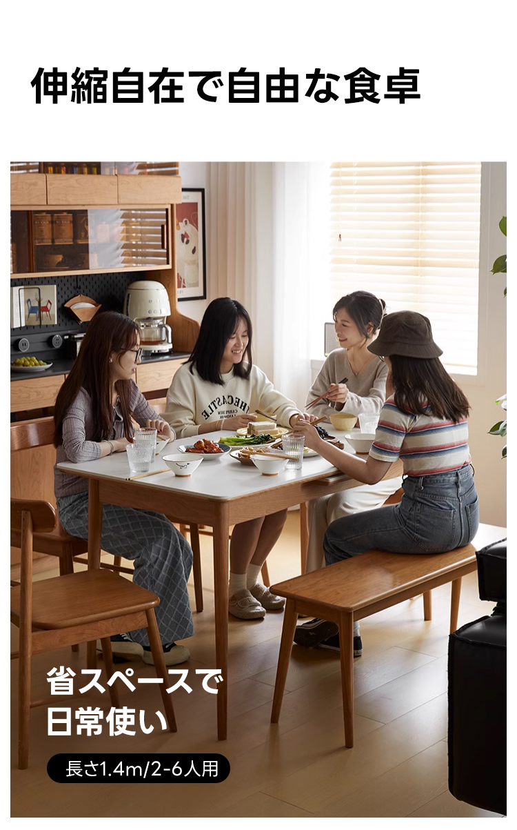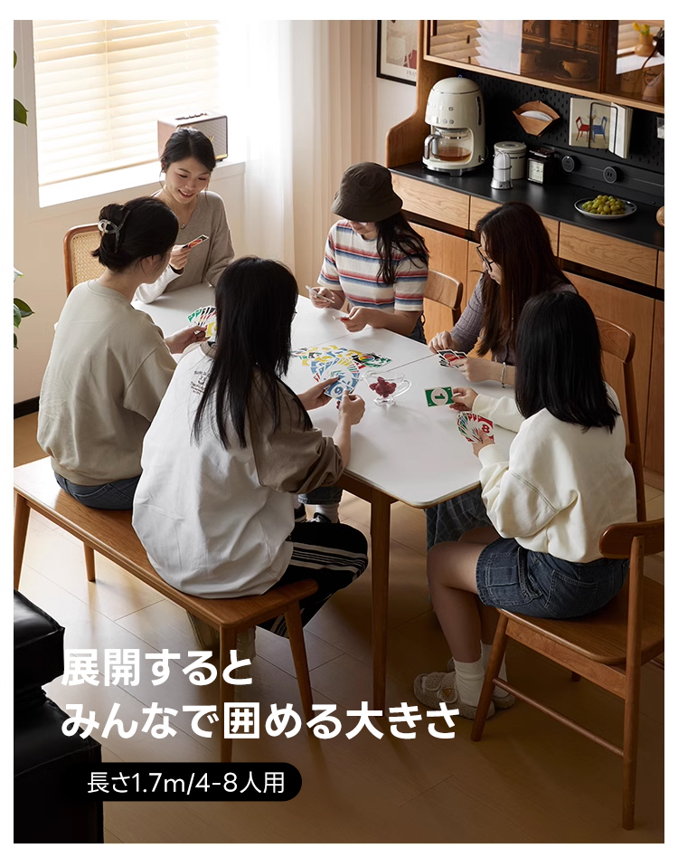 - 【伸縮自在で多様なシーンに対応】140cmから170cmまで伸縮可能なデザインで、2〜8人まで対応可能です。小さなダイニングから大人数の集まりまで、様々なシーンで活躍します。