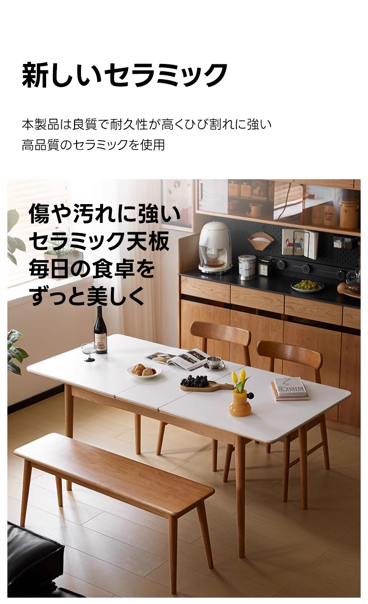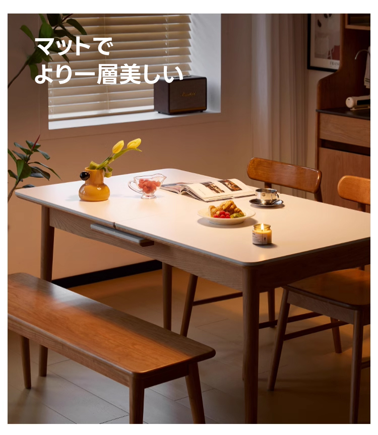 - 【高級感あふれるチェリー材とセラミックトップ】北米産FASグレードのチェリー材を使用し、上品な赤みと経年変化を楽しめます。1.2cmのセラミックトップは耐久性に優れ、傷や汚れに強くお手入れも簡単です。