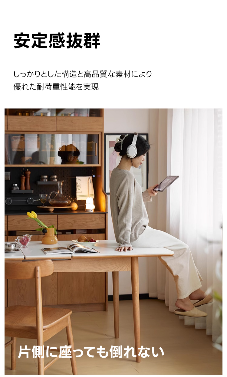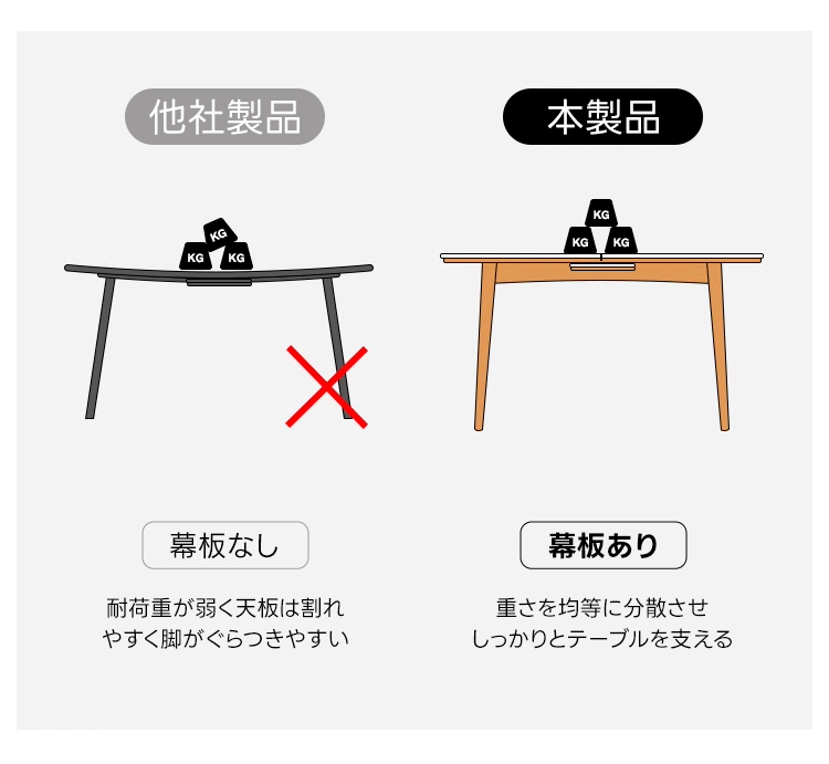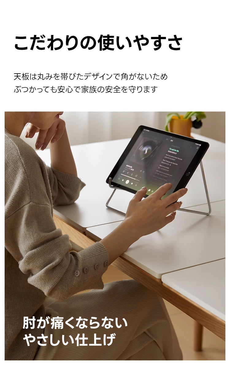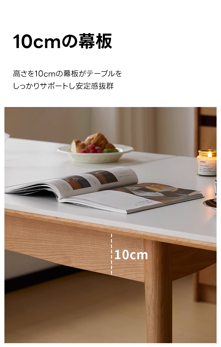 - 【安全性と安定感を兼ね備えたデザイン】10cmの幕板がしっかりとテーブルをサポートし、安定感抜群。片側に座っても倒れない設計で、家族の安全を守ります。