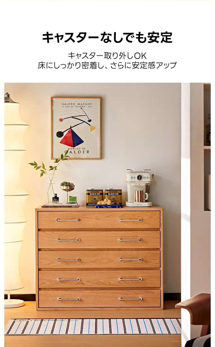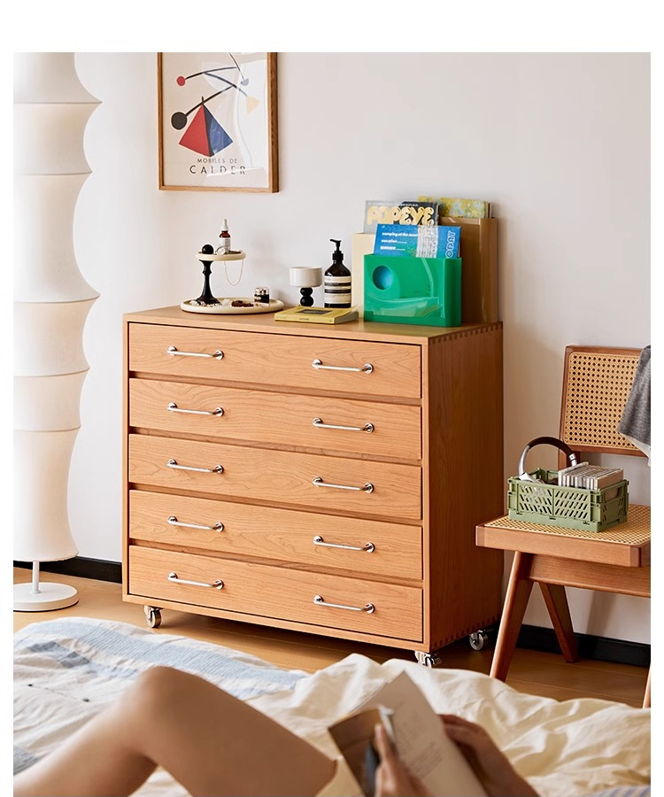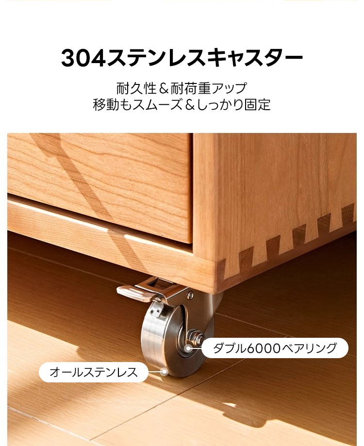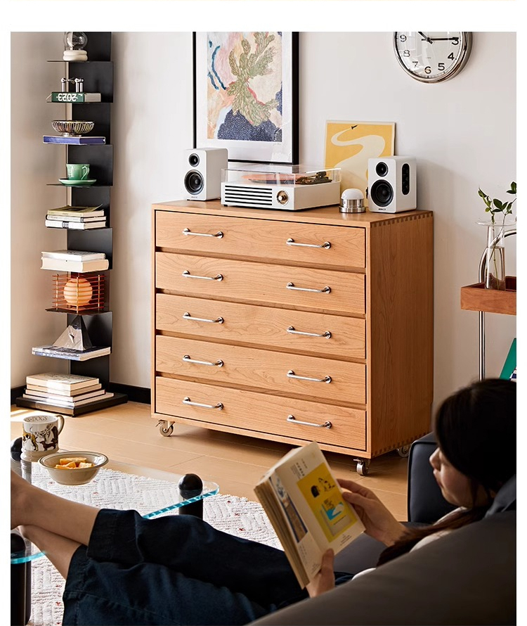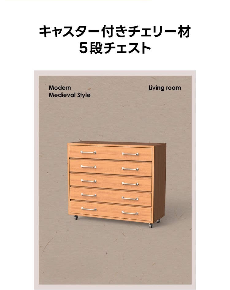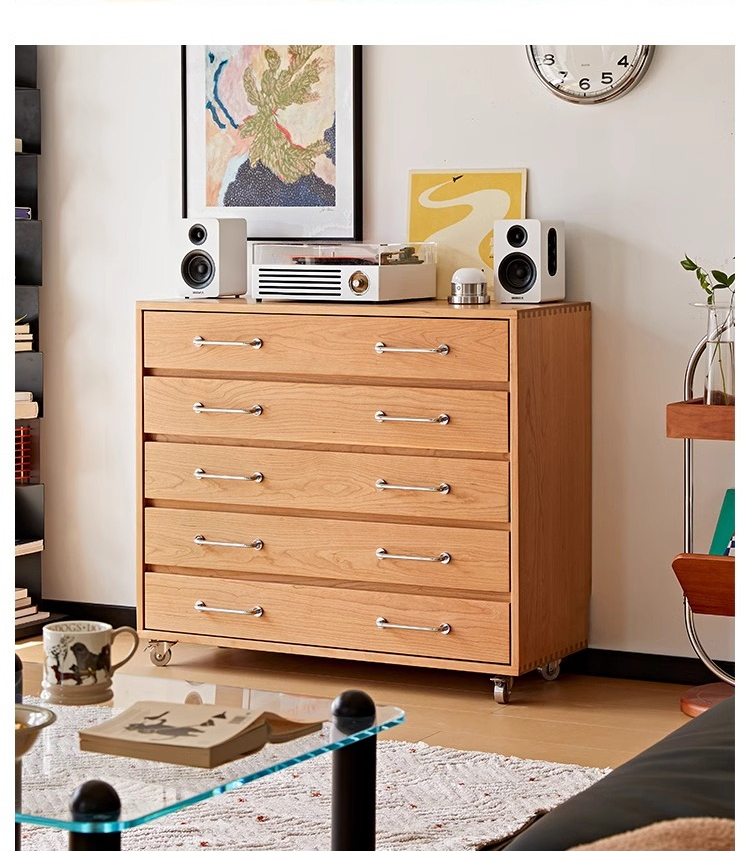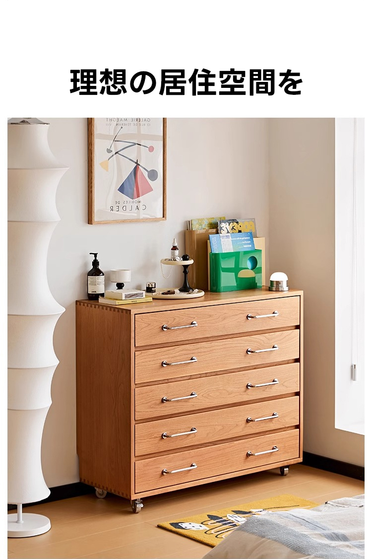 - 【大容量収納&スムーズな移動】このチェリー材キャスター付き5段チェストは、通常のチェストに比べて50%多い収納スペースを提供します。304ステンレス製のキャスターで移動が簡単で、取り外しも可能。安定感を求める方にはキャスターを外して使用することもできます。