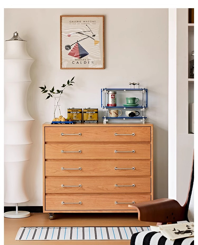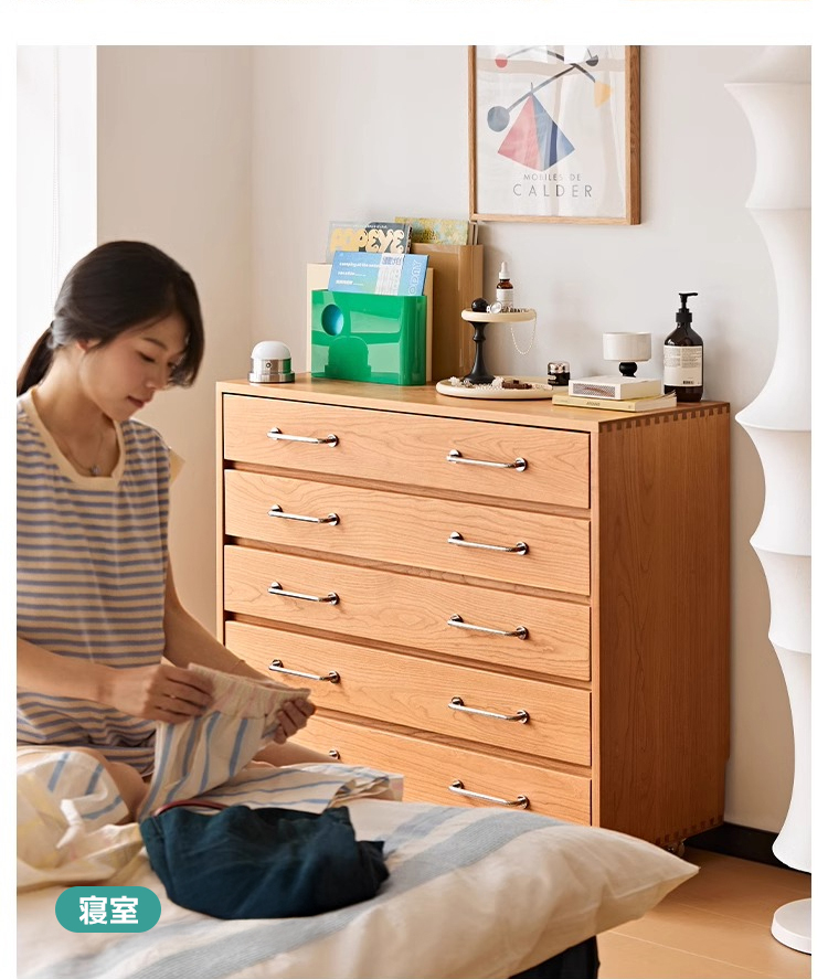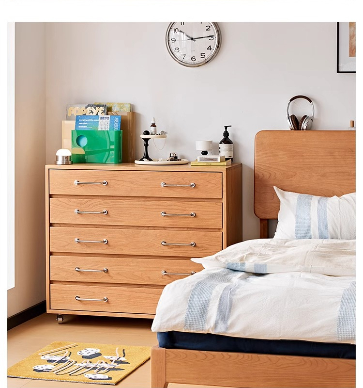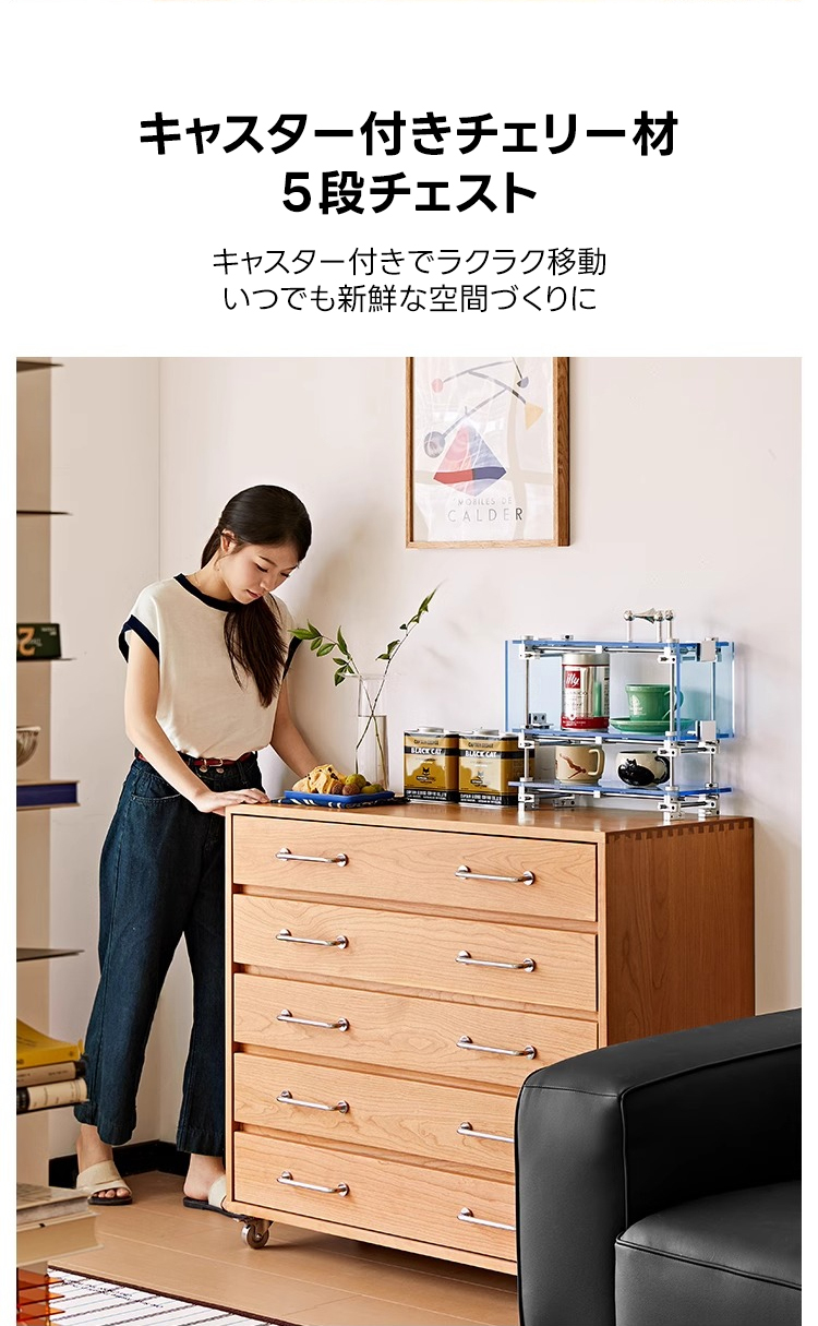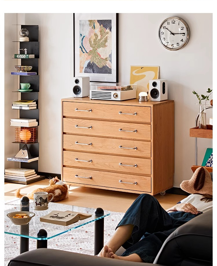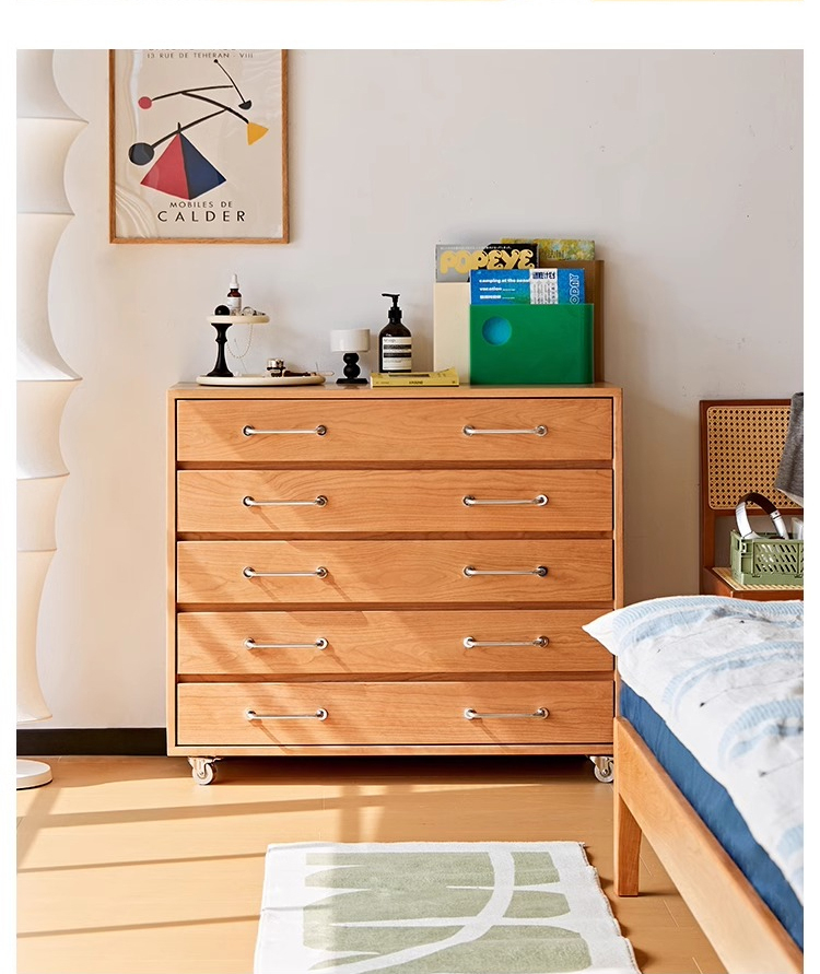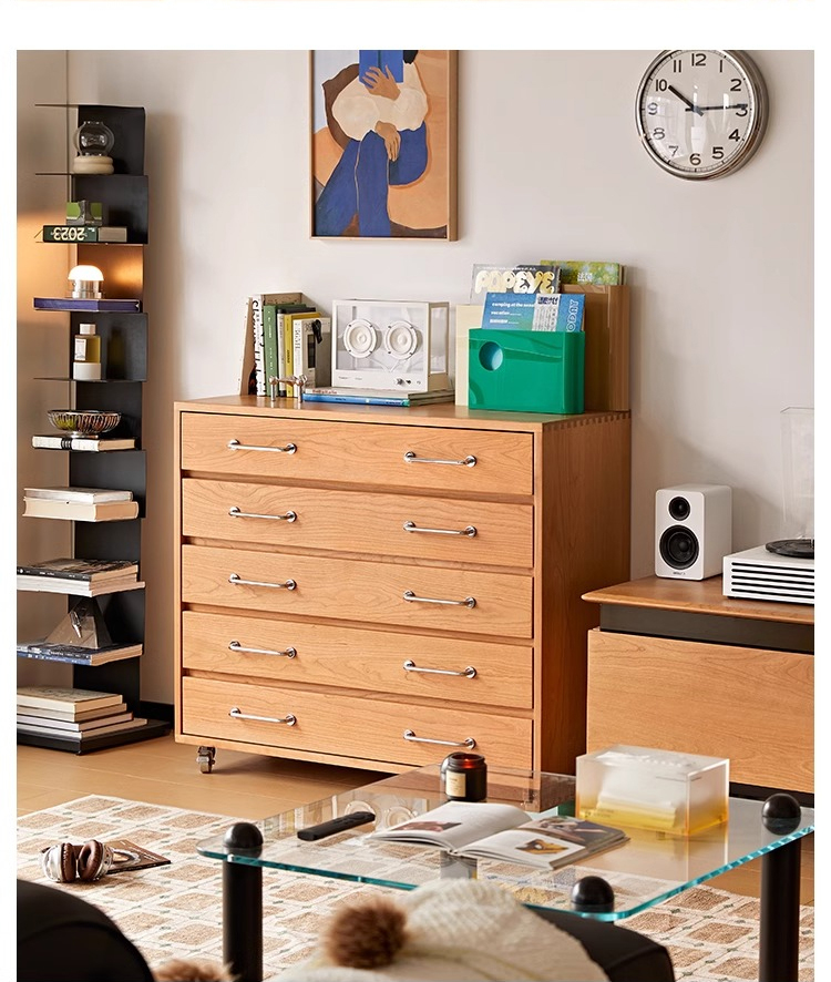 - 【大容量収納&スムーズな移動】このチェリー材キャスター付き5段チェストは、通常のチェストに比べて50%多い収納スペースを提供します。304ステンレス製のキャスターで移動が簡単で、取り外しも可能。安定感を求める方にはキャスターを外して使用することもできます。
