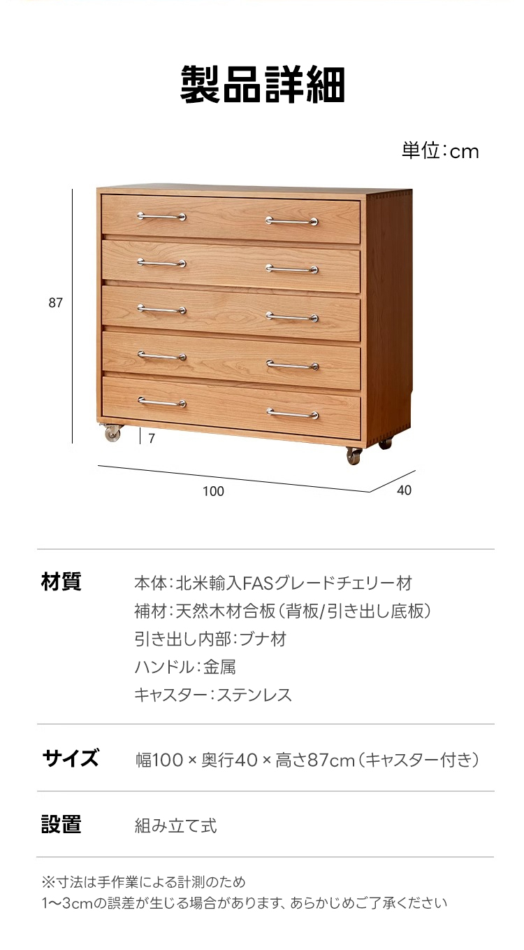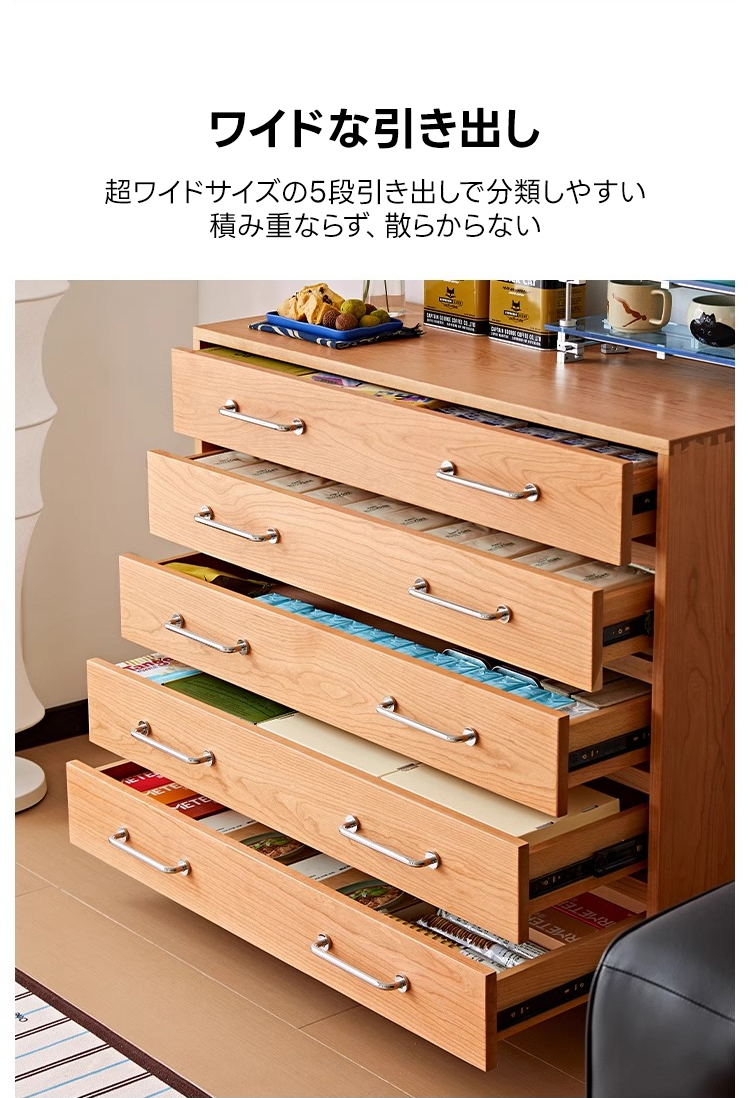 - 【快適な使用体験】引き出しはワイドサイズで、分類しやすく、散らかりにくい設計。経年変化を楽しめるチェリー材の色合いが、長く愛用できる理由です。組立品としてお届けし、設置も簡単です。