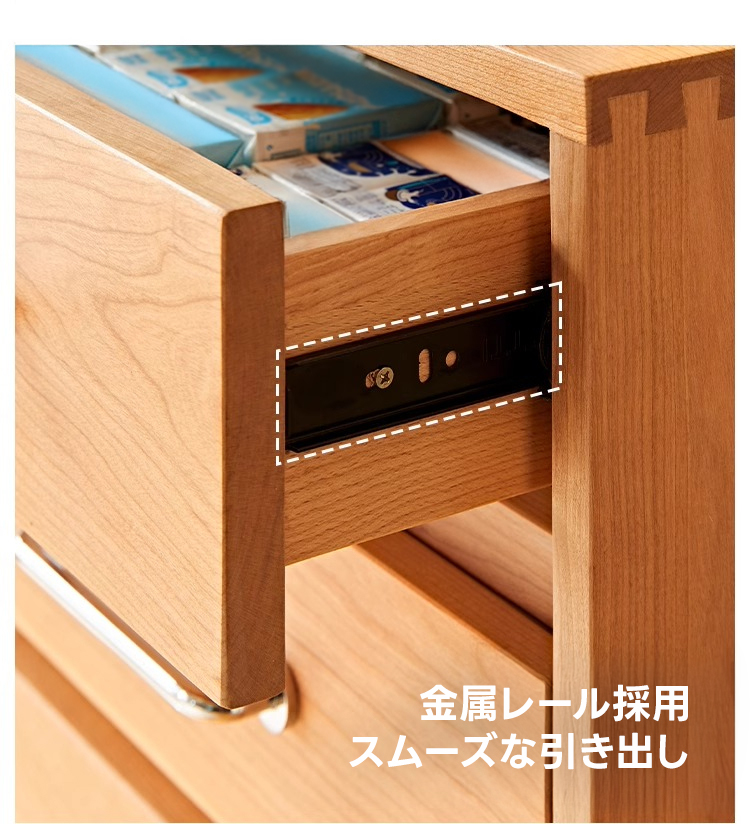 - 【高品質な素材とデザイン】北米輸入FASグレードのチェリー材を使用し、美しい木目と耐久性が特徴です。クラシックな金属ハンドルと伝統的なほぞ継ぎ技法が高級感を演出します。金属レールの採用で引き出しの開閉もスムーズです。