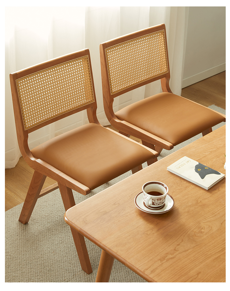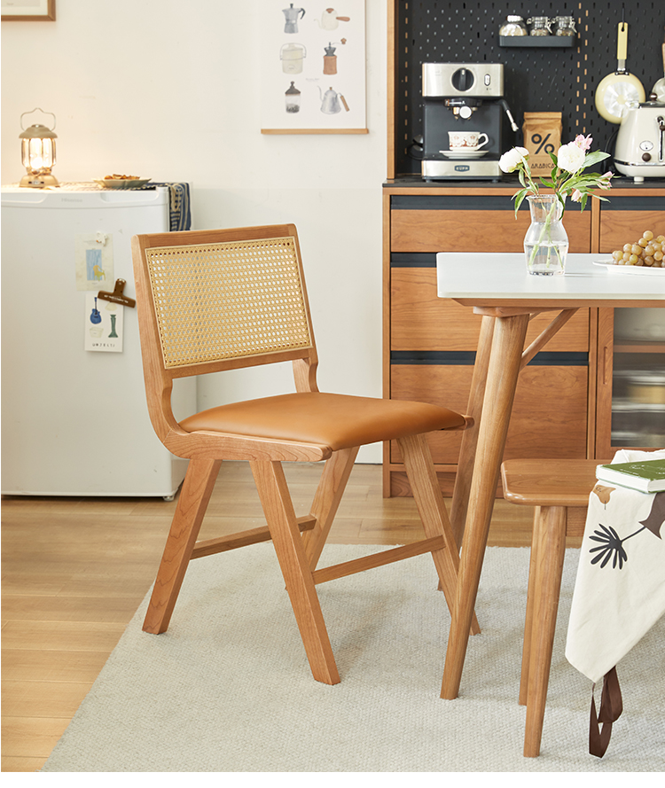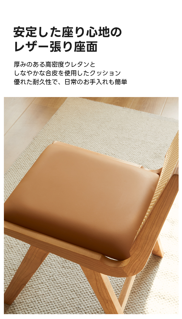 ラタン×レザー異素材ウッドチェア